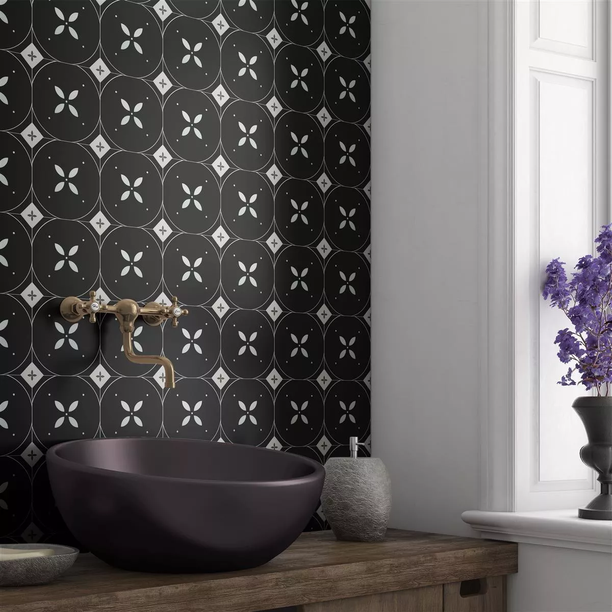 Azulejos De Gres Azulejos Genexia Negro Blanco Decor 2 Octágono 20x20cm