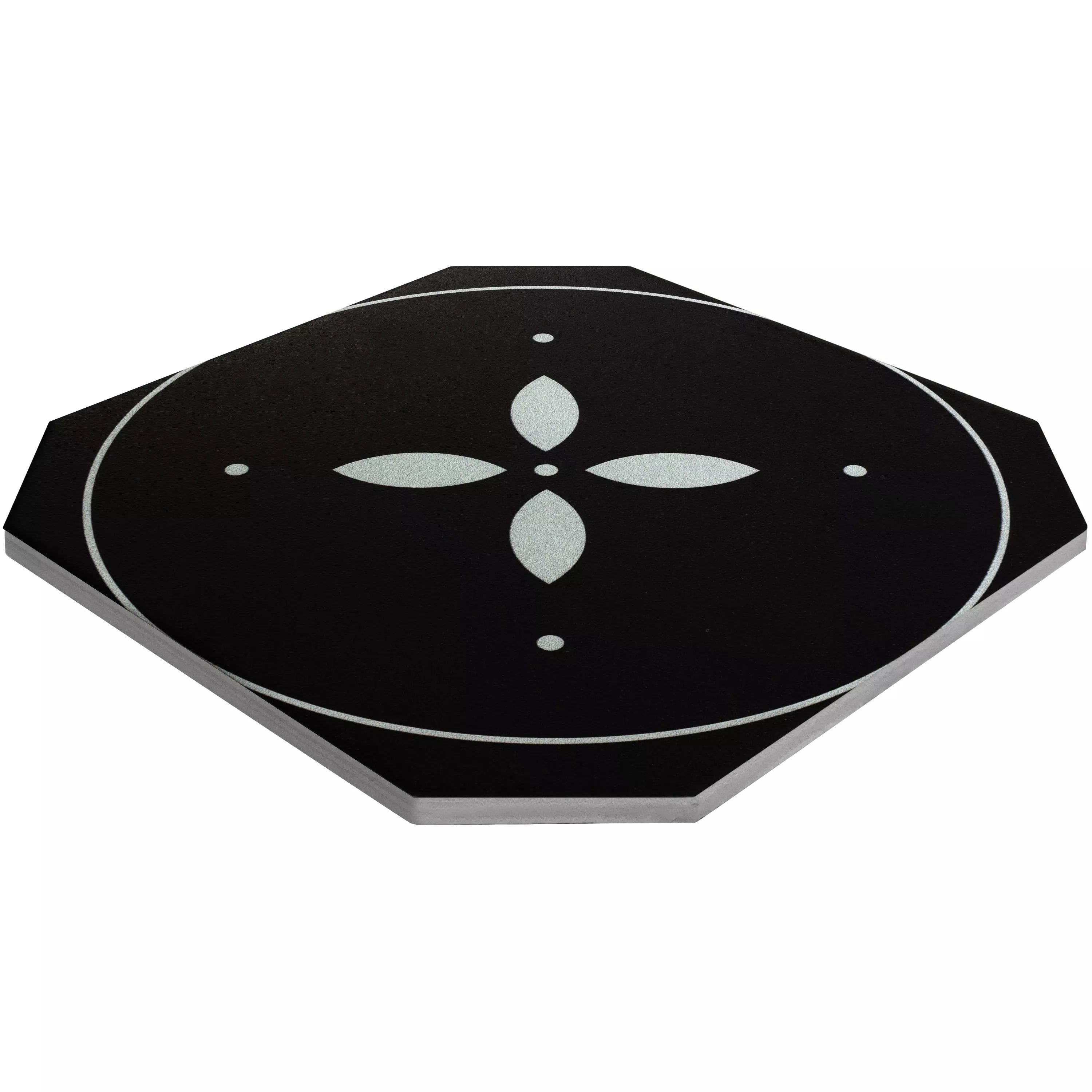 Los azulejos de gres porcelánico Genexia Black White Decor 2 Octagon se presentan como una obra maestra de geometría y elegancia. Con una decoración atemporal en blanco y negro y un llamativo formato octágono, añaden un toque de sofisticación a cualquier habitación.