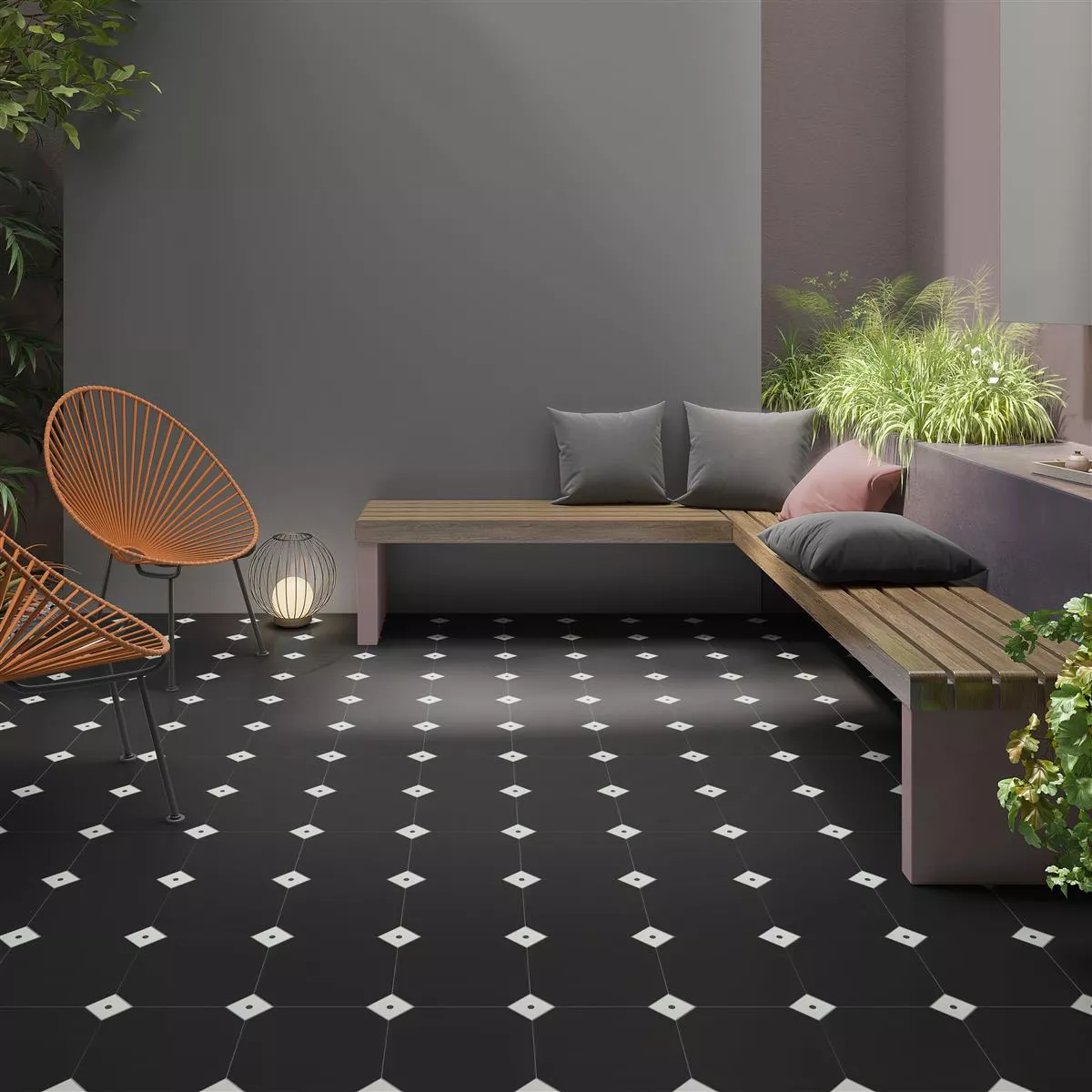 Azulejos de gres porcelánico Genexia Uni Black Octagon 20x20cm - elegancia clásica en negro