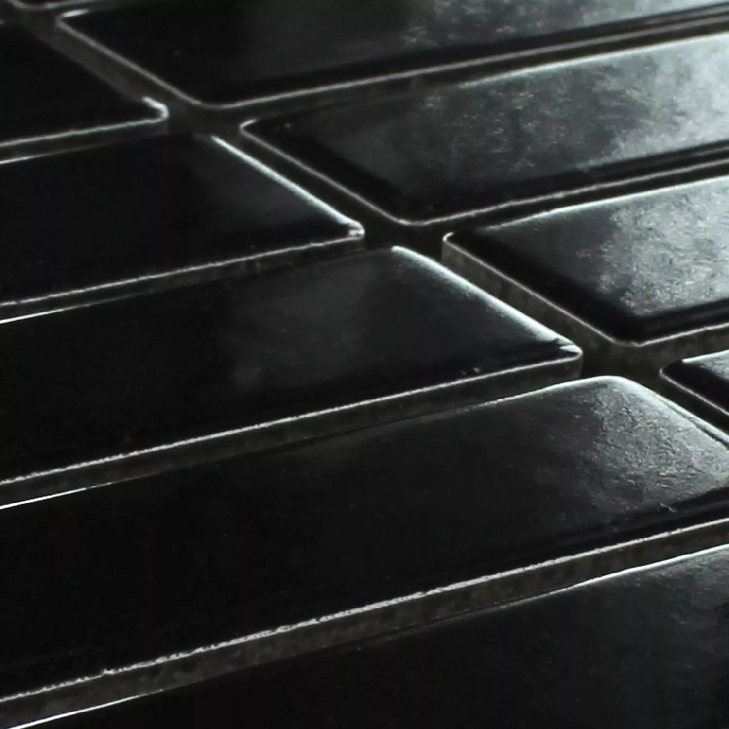 El mosaico cerámico, en color negro uni y acabado superficial brillo, tiene un tamaño mate de 298x318mm y un tamaño piedra de 21,9x72,8mm. El grosor de cada piedra es de 0,6 cm.