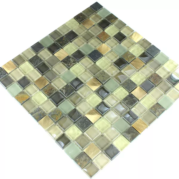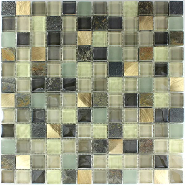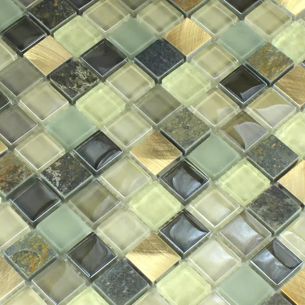 Azulejos De Mosaico Cristal Acero Inoxidable Metal Cuarcita
