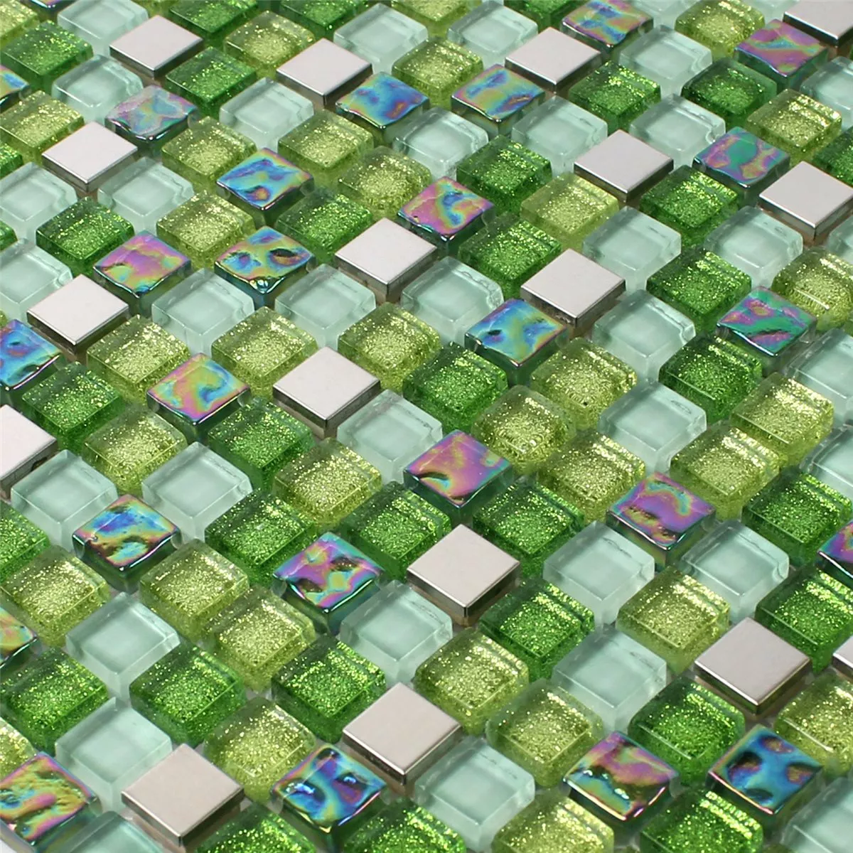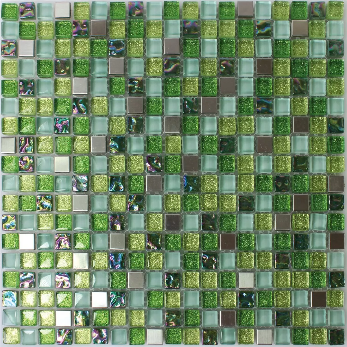 Azulejos De Mosaico Cristal Acero Inoxidable Verde Mezcla
