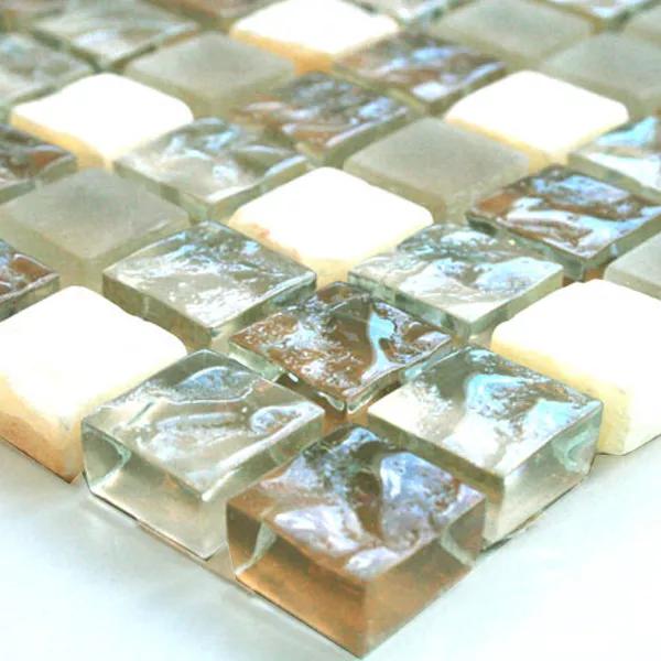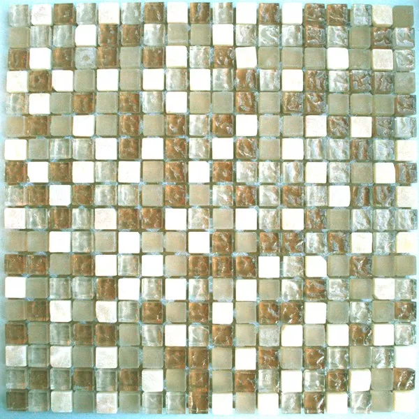 Azulejos De Mosaico Cristal Mármol 15x15x8mm Beige Mezcla Onyx