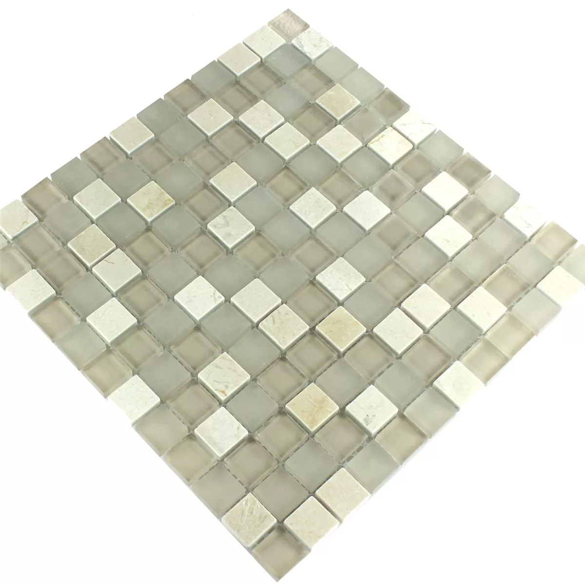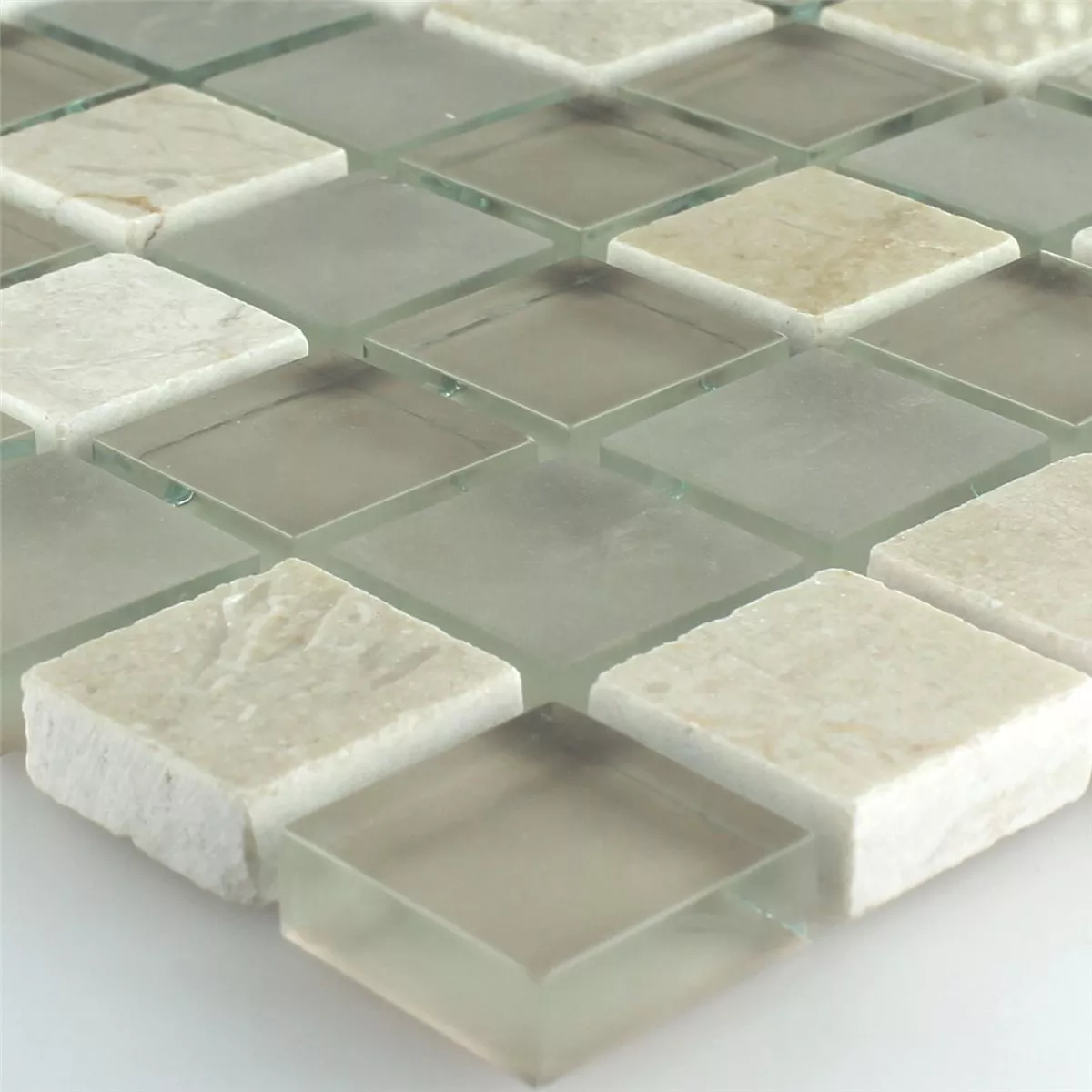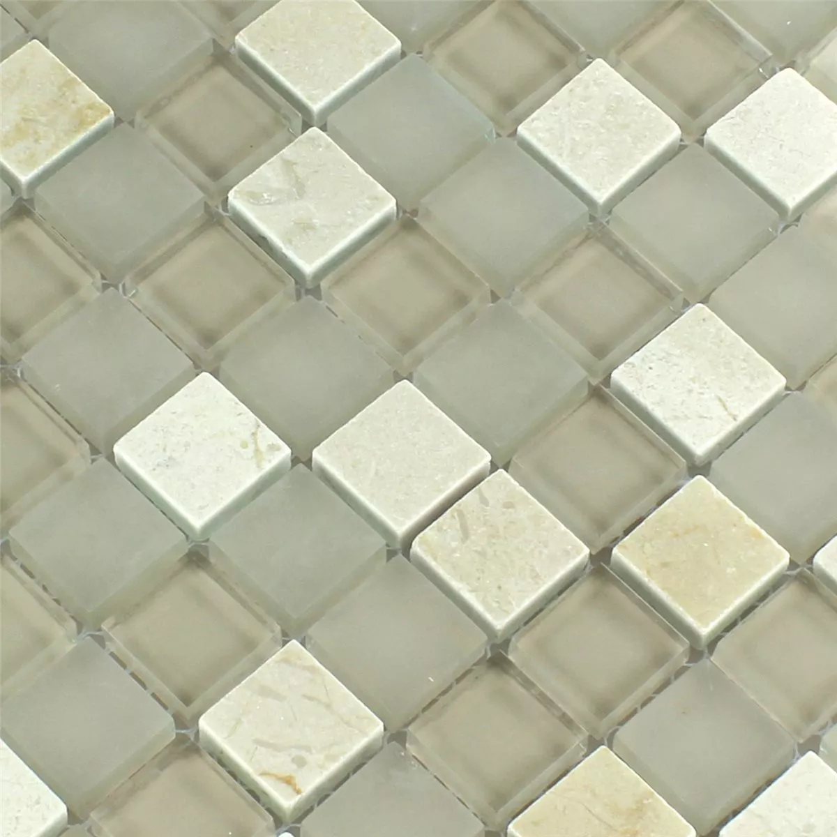 Azulejos De Mosaico Cristal Mármol Barbuda Crema 23x23x8mm