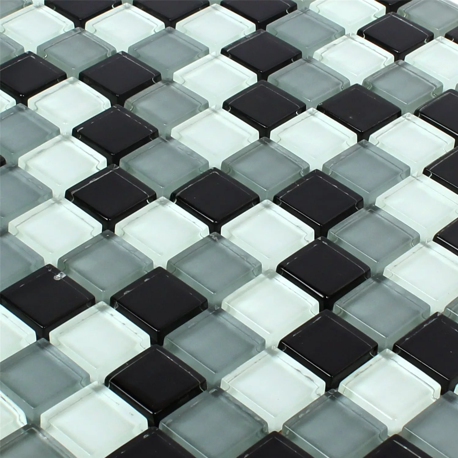 Azulejos De Mosaico Cristal Palmas Negro Gris Blanco