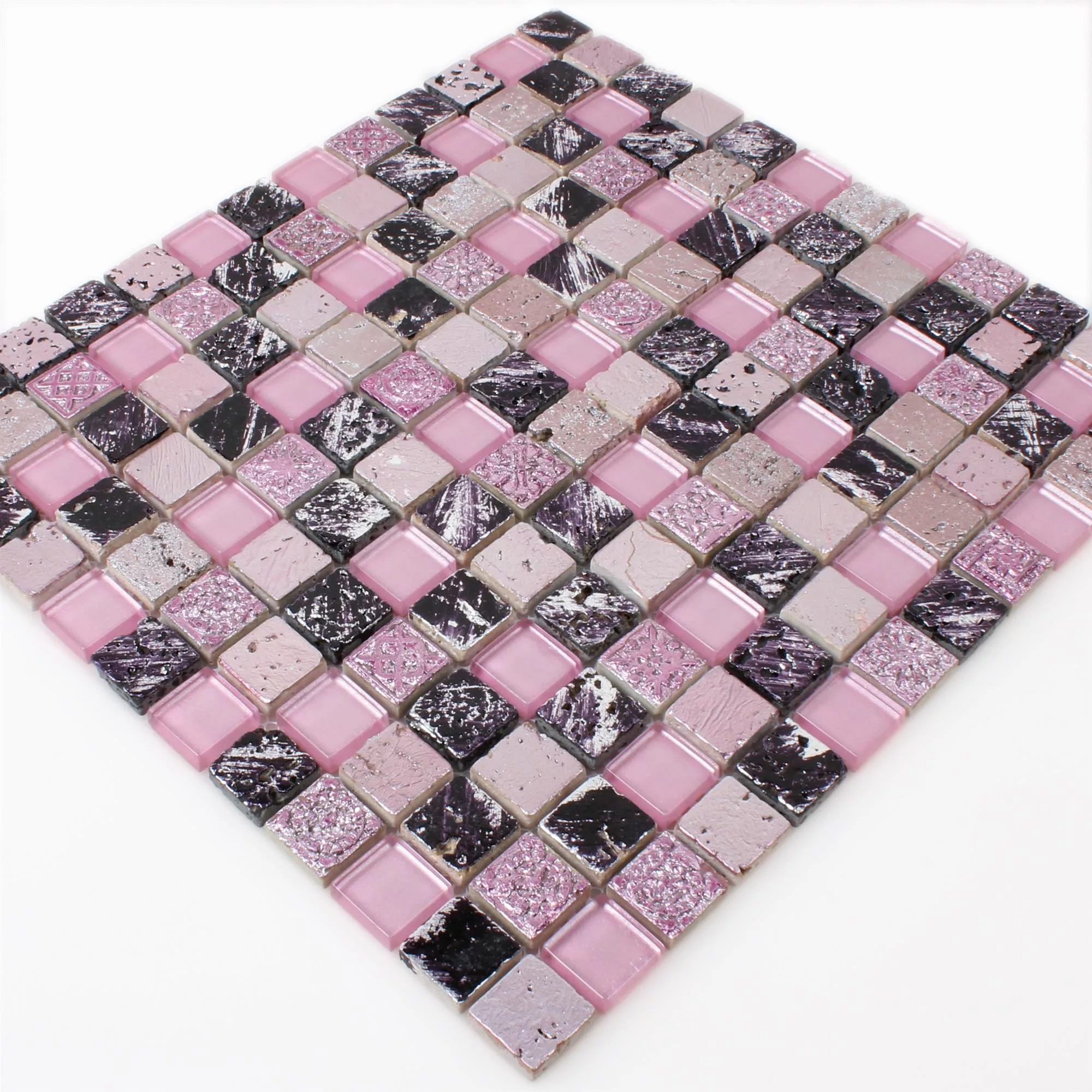 Azulejos De Mosaico Cristal Resina Piedra Natural Pink Mezcla