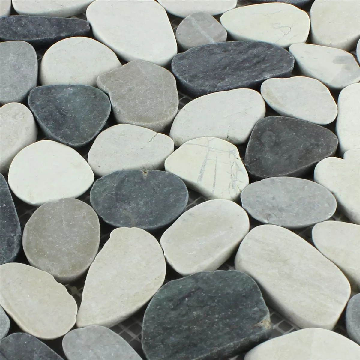 Azulejos De Mosaico Guijarro De Río Aserrado Crema Antracita