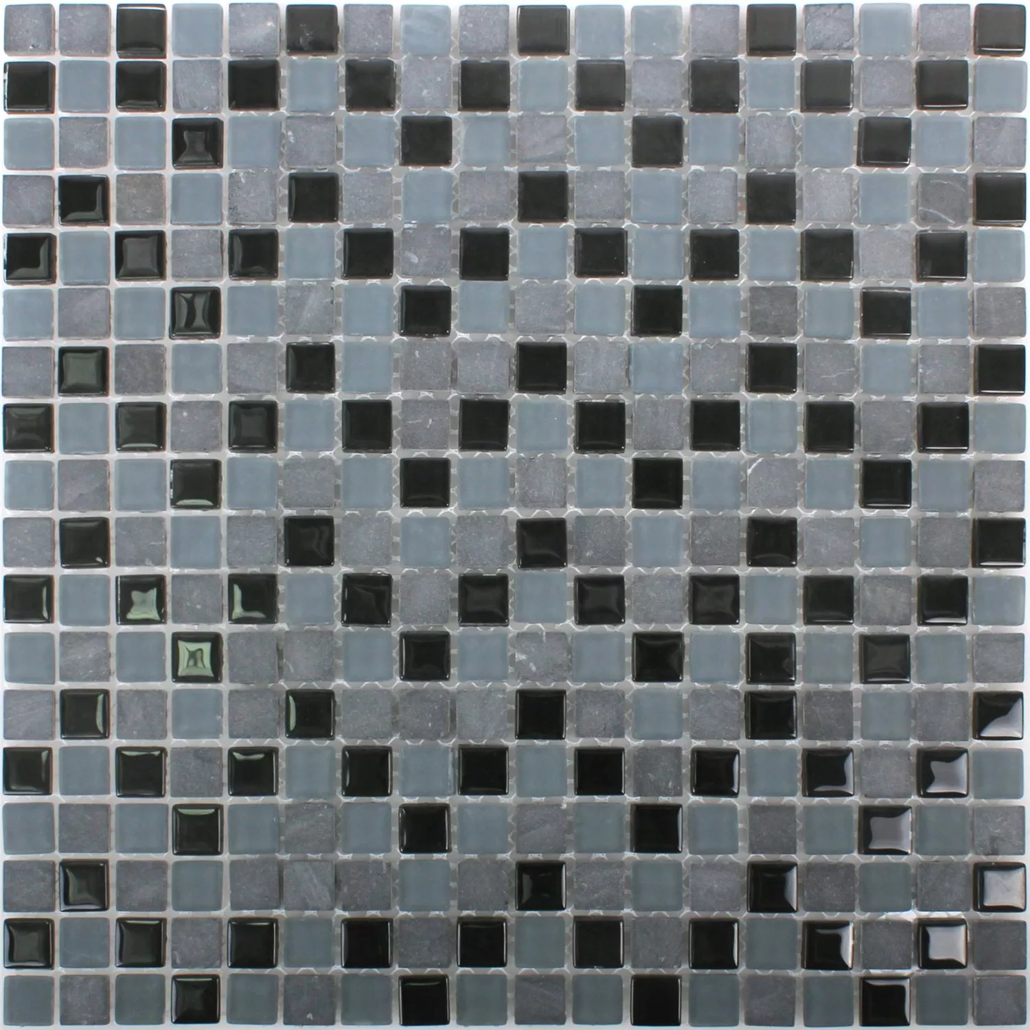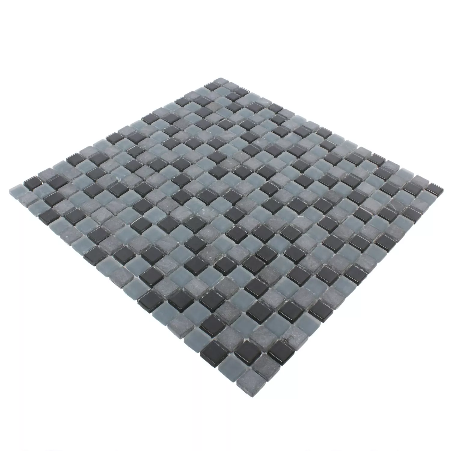 El mosaico de mezcla de vidrio y mármol Kobra en blanco y negro 15 es simplemente hermoso atemporal. Están hechos de vidrio y mármol. El mármol utilizado es negro y gris, el vidrio es mate. Los azulejos en sí son todos de corte cuadrado. Las baldosas se pegaron previamente a las esteras para que puedan colocarse fácilmente. Las alfombrillas se pueden instalar fácilmente y aseguran que las distancias se puedan utilizar de manera óptima.