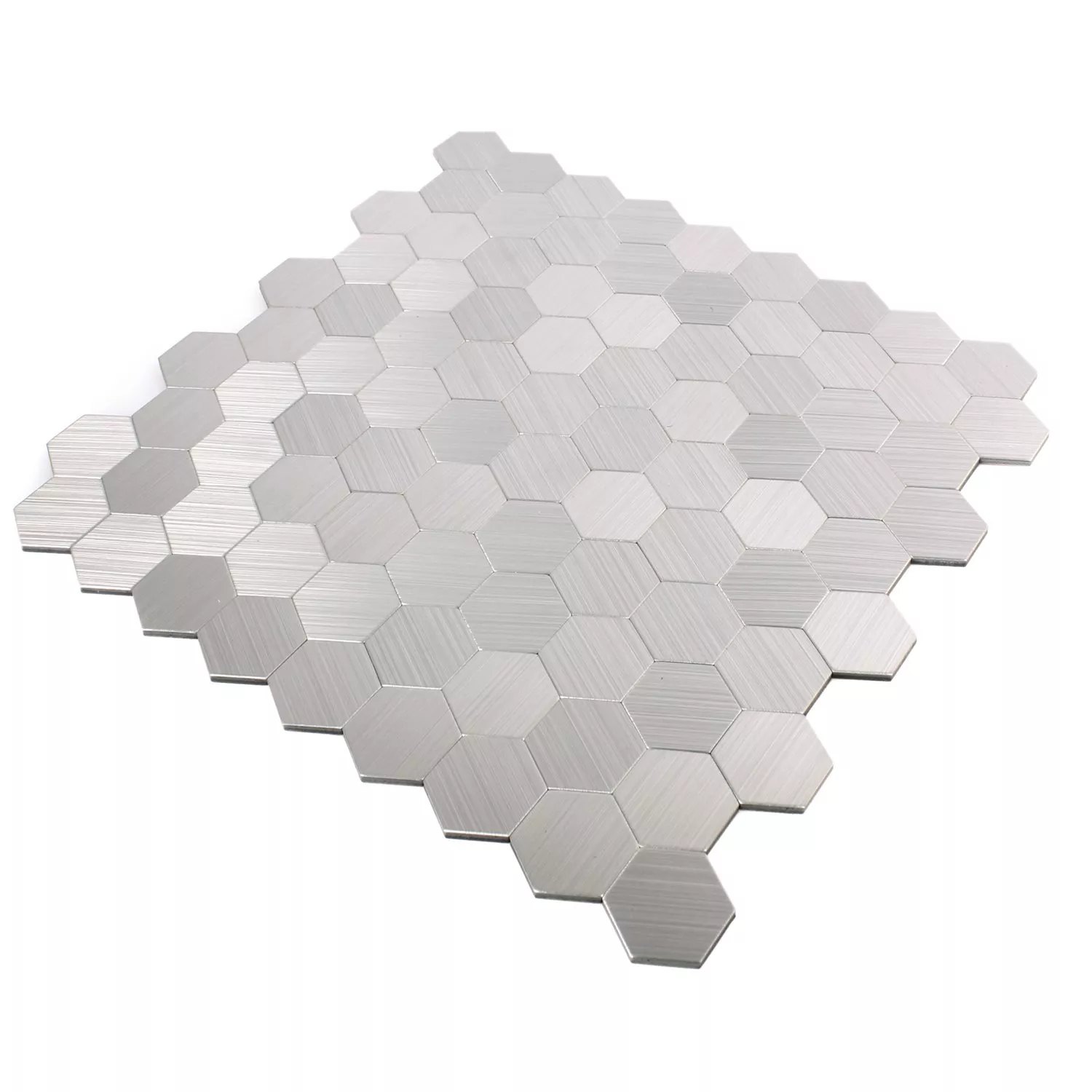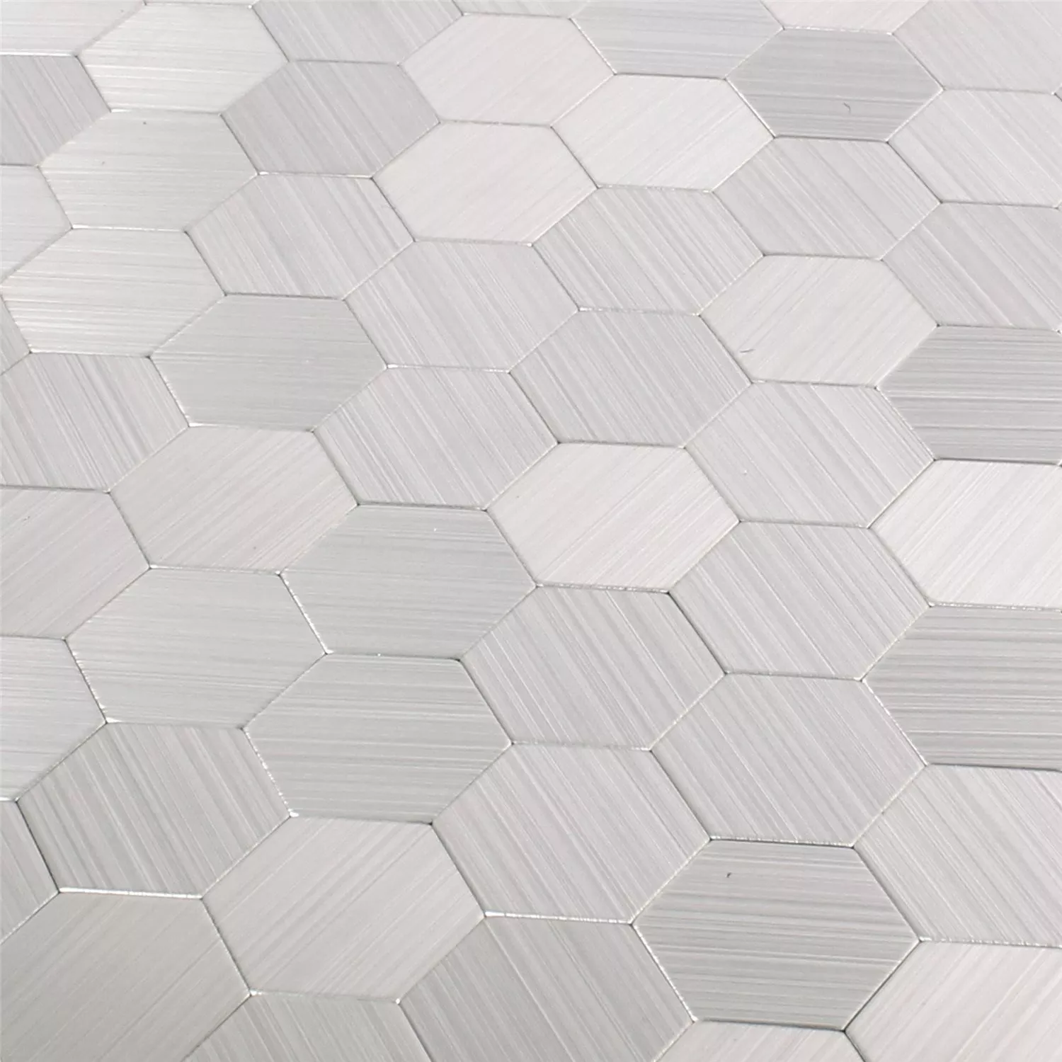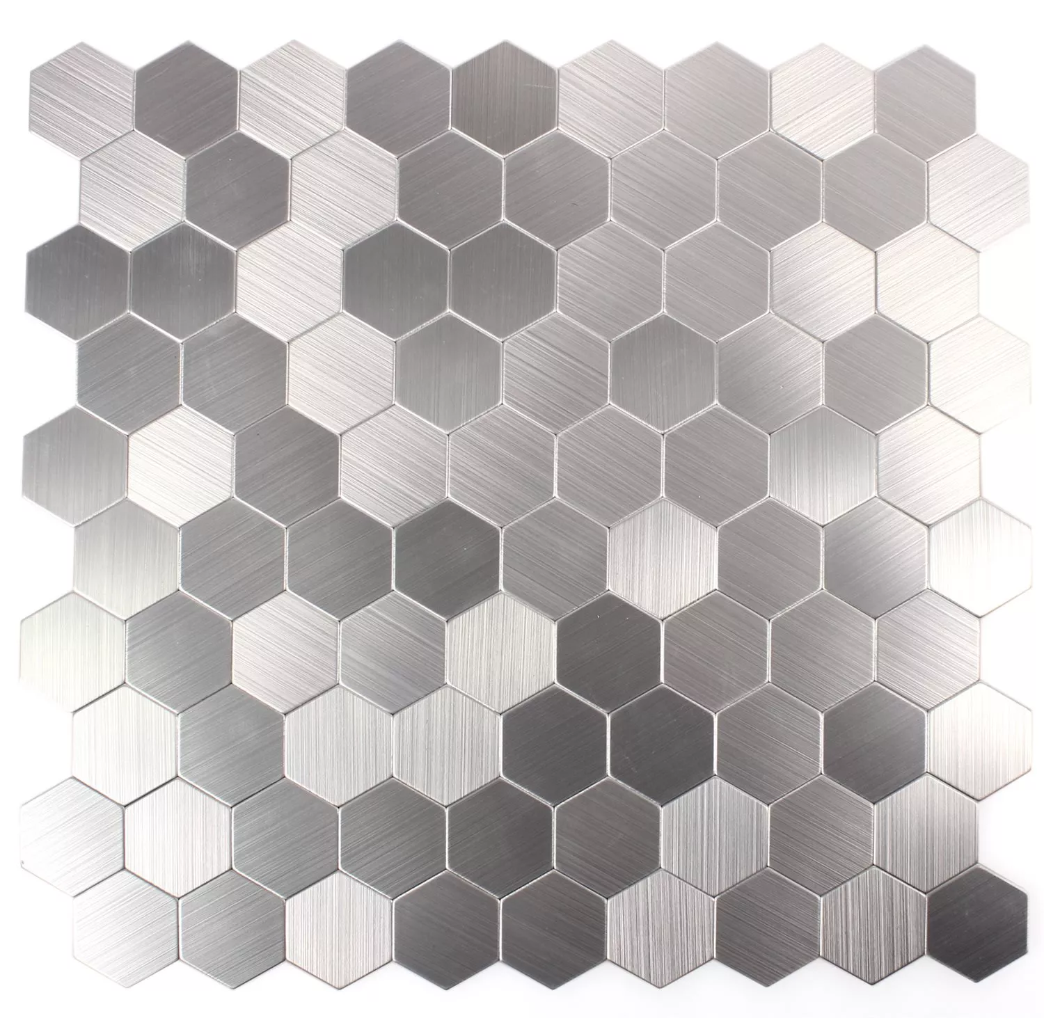 Azulejos De Mosaico Metal Autoadhesivo Mikros Plateado Hexagonales