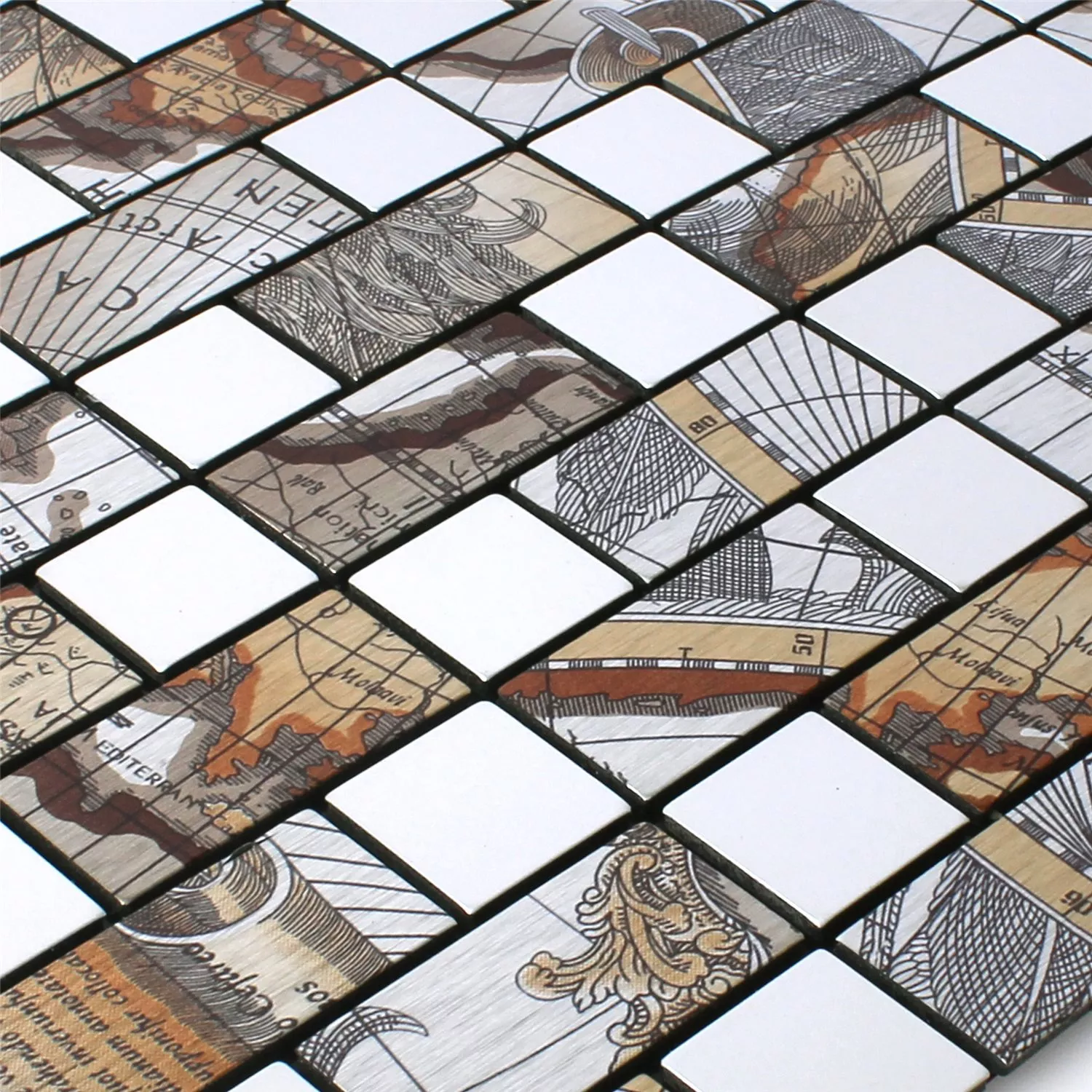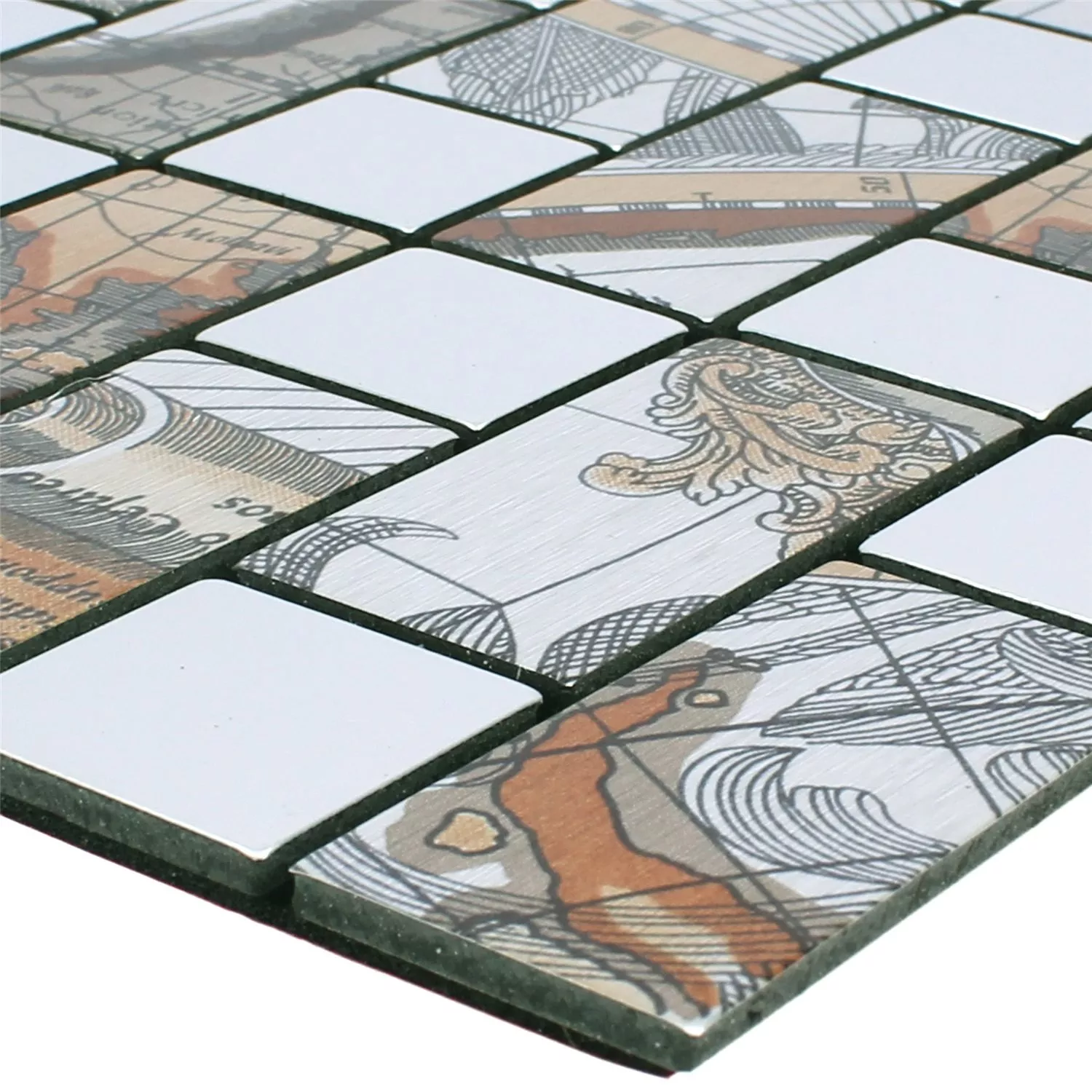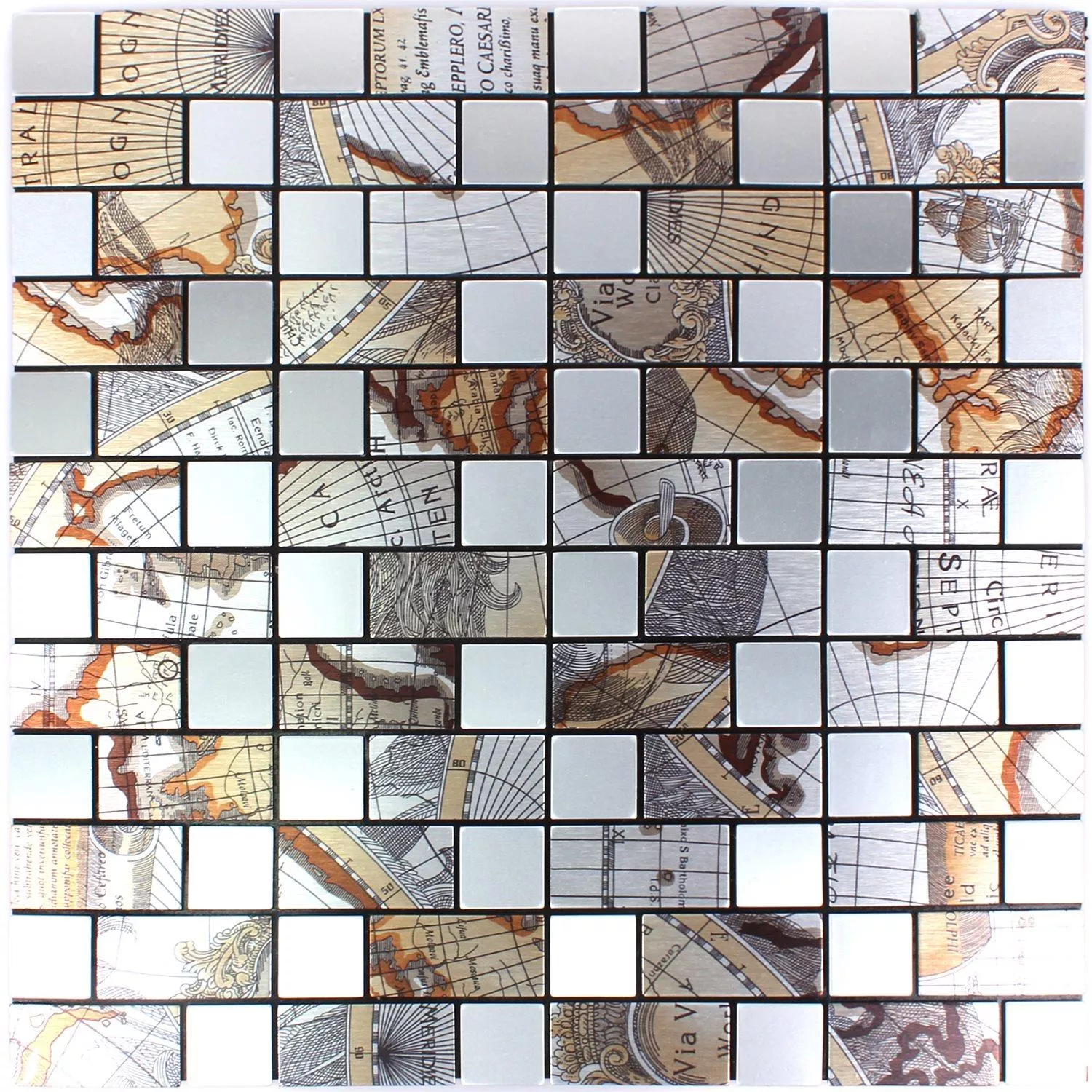 Azulejos De Mosaico Metal Autoadhesivo Pinta Mapa Del Mundo Plateado Rectángulo