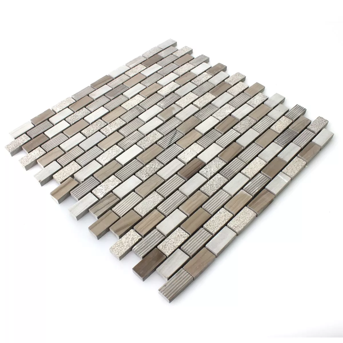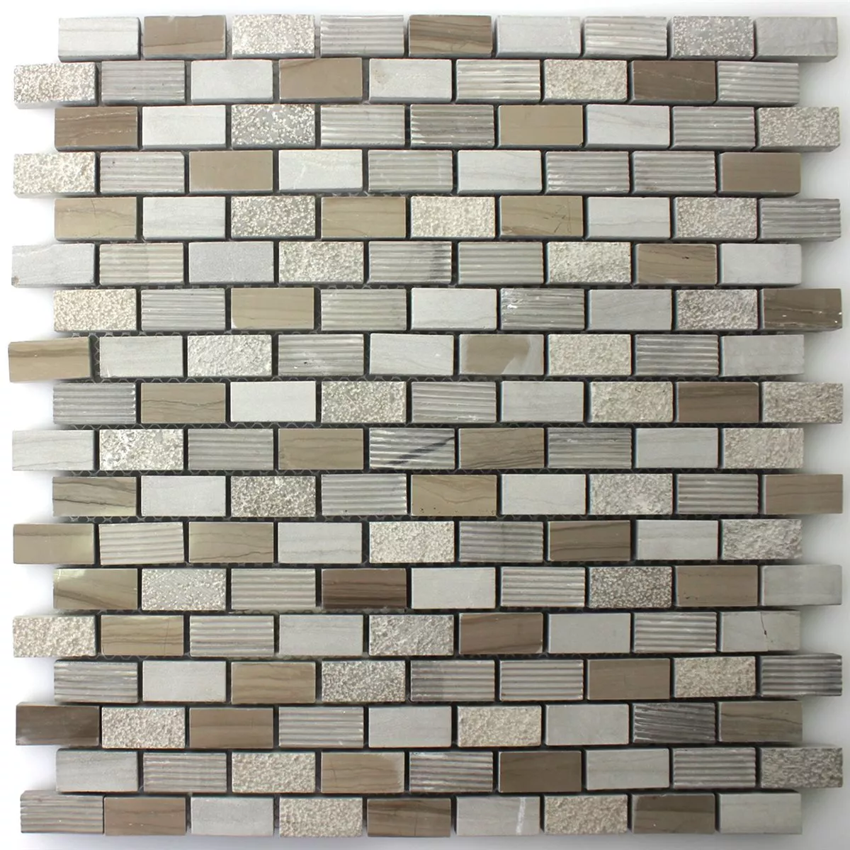 Azulejos De Mosaico Piedra Natural Mocca Marrón 15x30x8mm