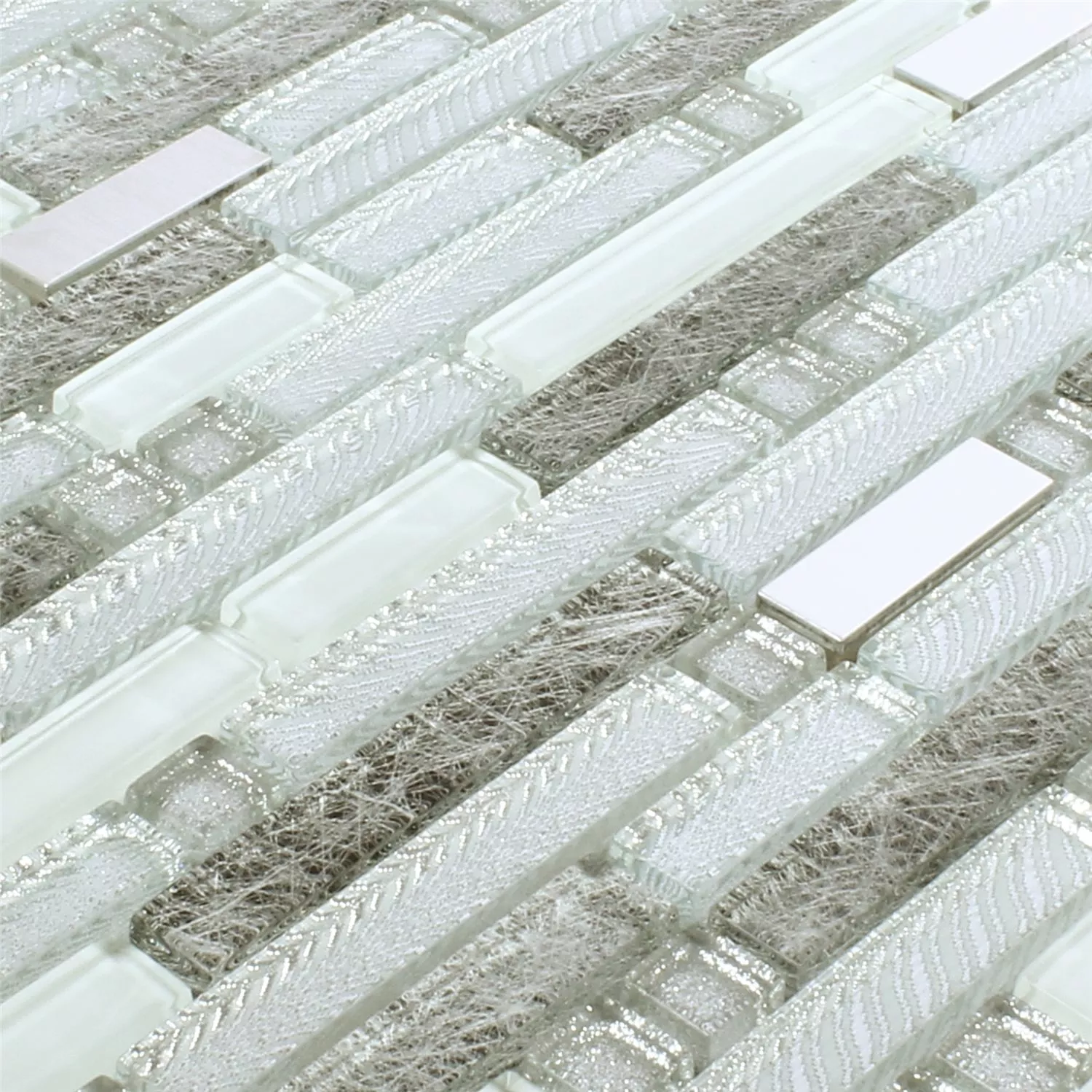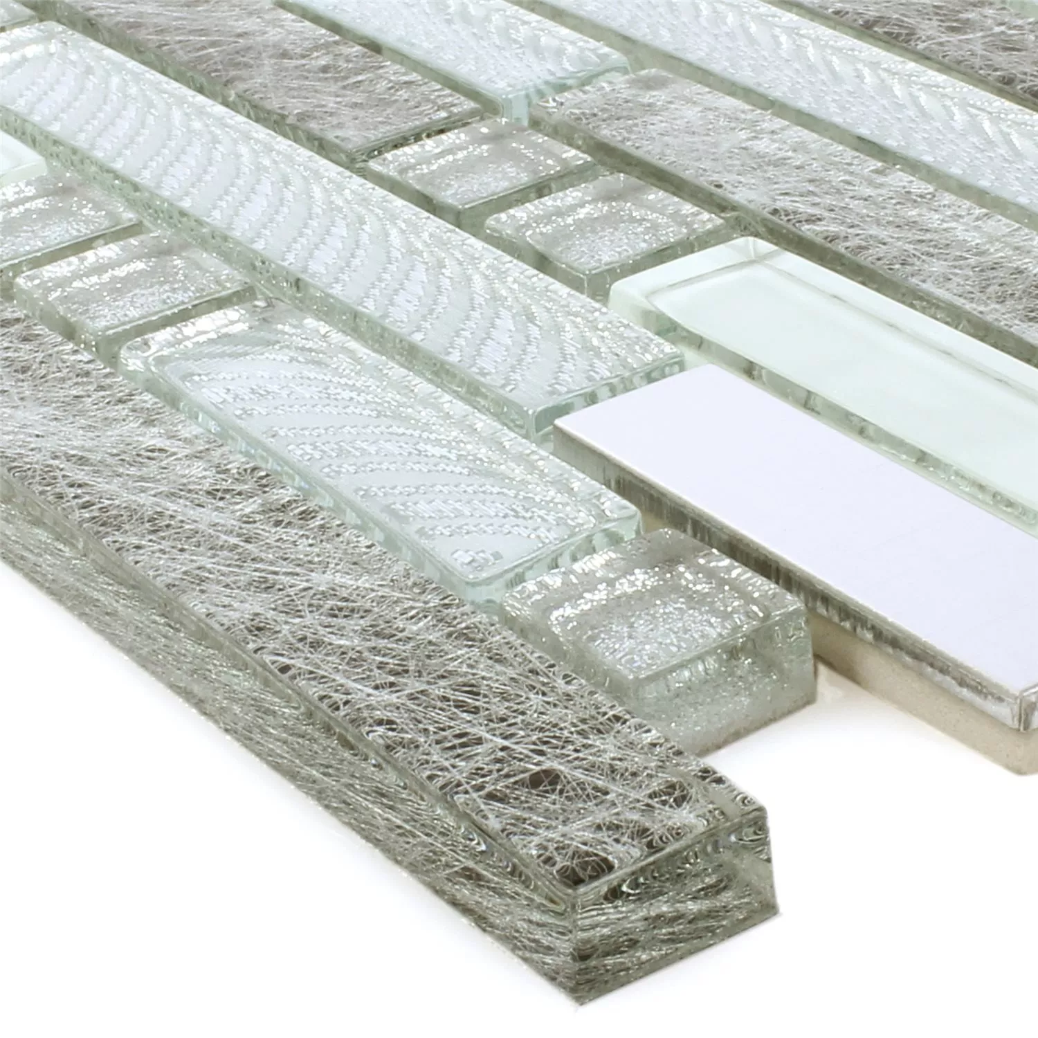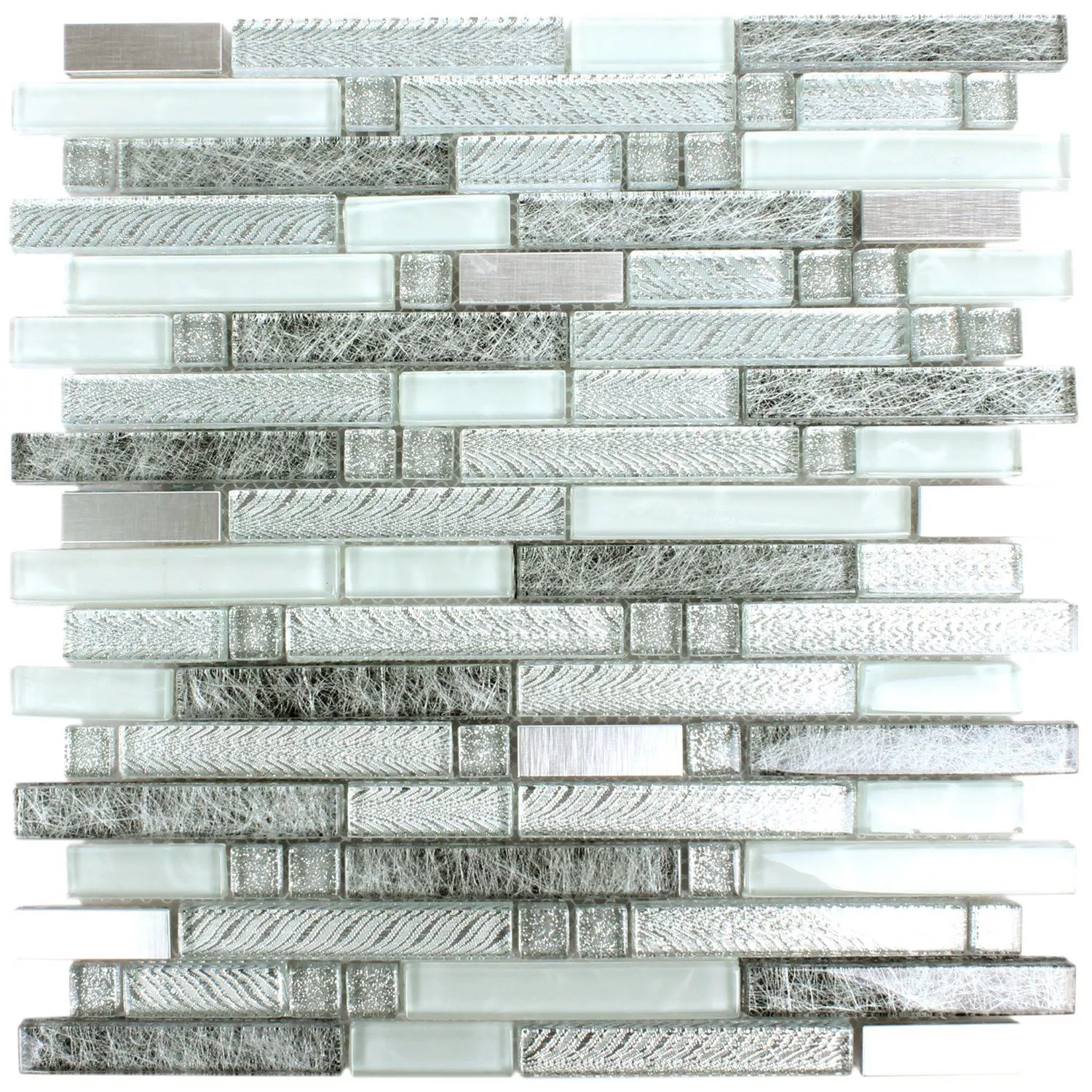 Azulejos De Mosaico Zaide Cristal Alu Mezcla Plateado Gris