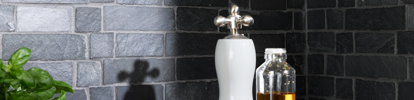 Incluso las puertas y los marcos pueden cubrirse con pizarra plana. Con pizarra en todos los colores, desde el gris oscuro hasta los tonos claros, los propietarios de viviendas reciben un pedazo de calor natural en la casa. Incluso las cocinas se convierten en un toque hogareño con estos azulejos.