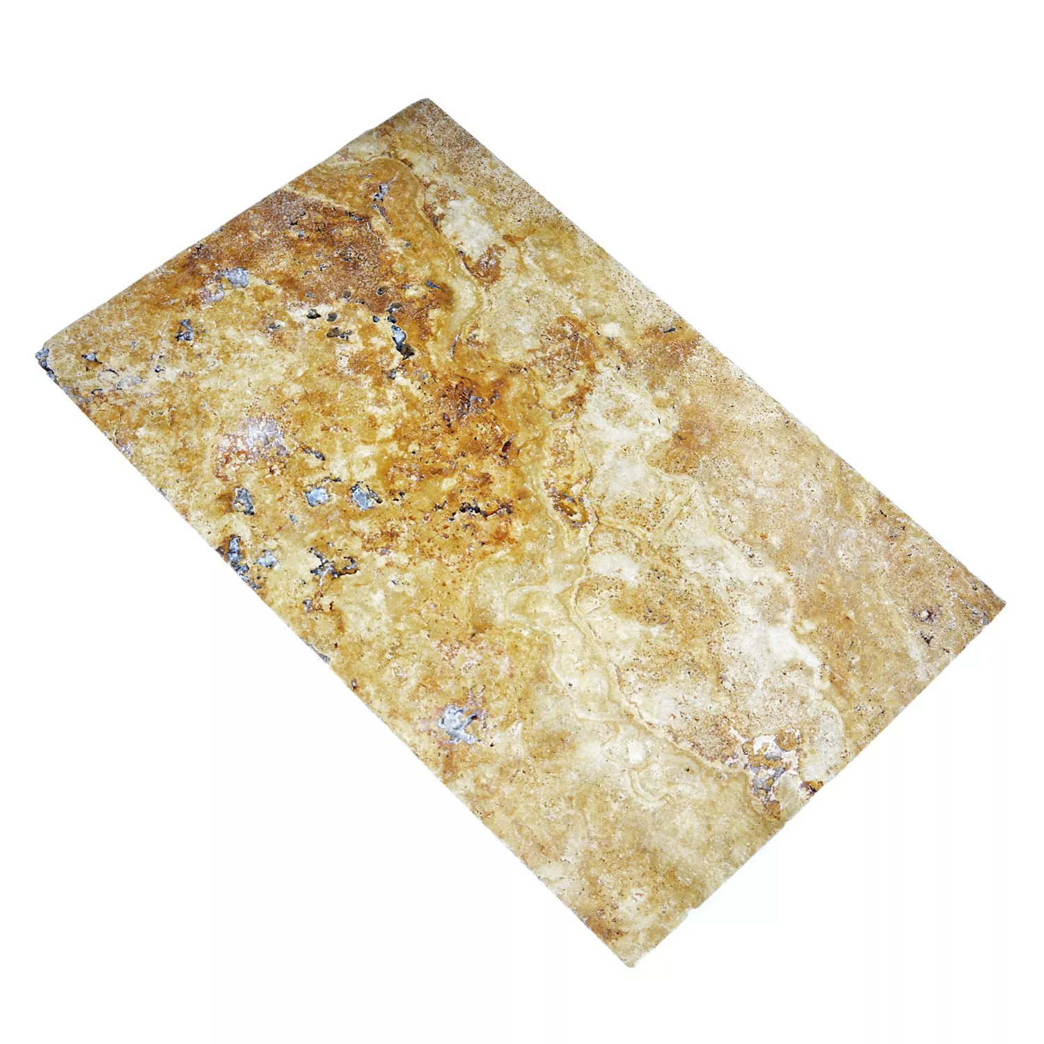 Las baldosas de piedra natural, como el travertino Castello Gold, tienen una especial sostenibilidad y, sobre todo, estas baldosas son especialmente adecuadas para la colocación de mosaicos. Esto tiene que ver con el juego de colores de aspecto dorado natural de la piedra natural. La piedra travertino es una piedra caliza refinada que siempre ha tenido su propósito como revestimiento de pisos en varias formas y tamaños. El cliente también puede elegir con las baldosas de piedra natural Travertino Castello Gold.