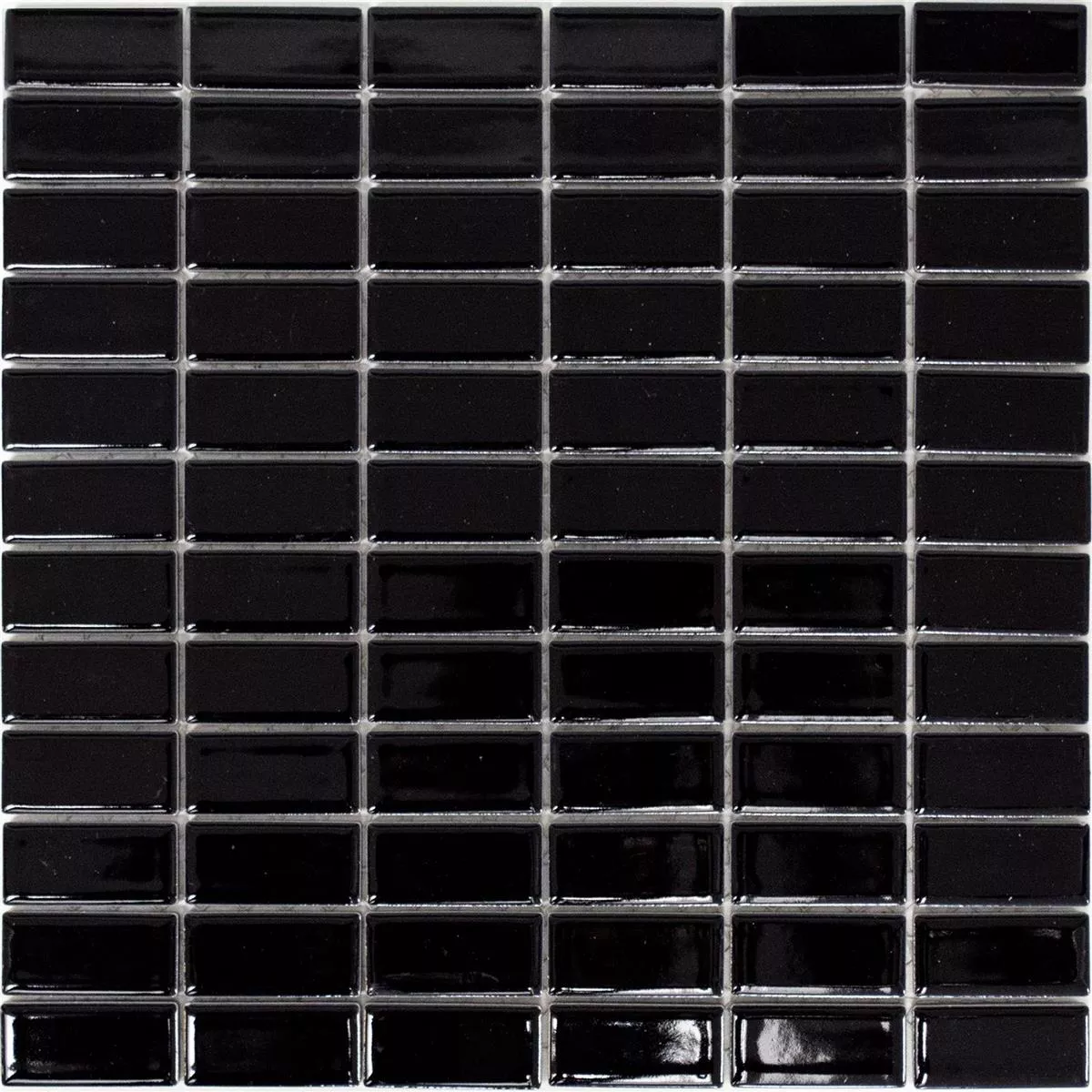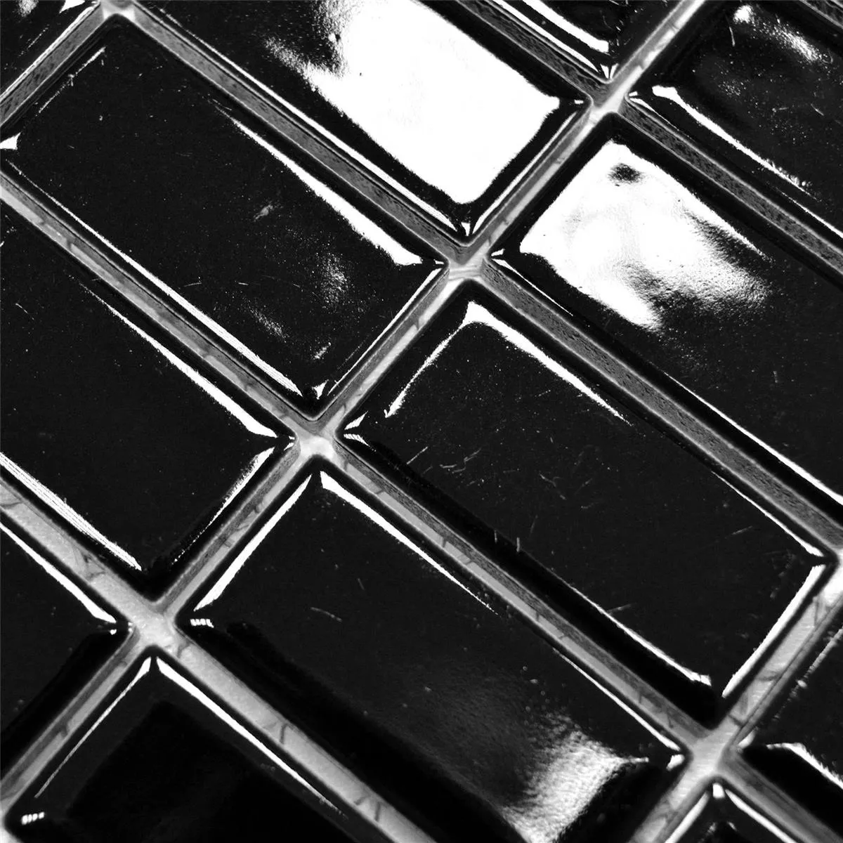Cerámica Azulejos De Mosaico Adrian Negro Brillante Rectángulo