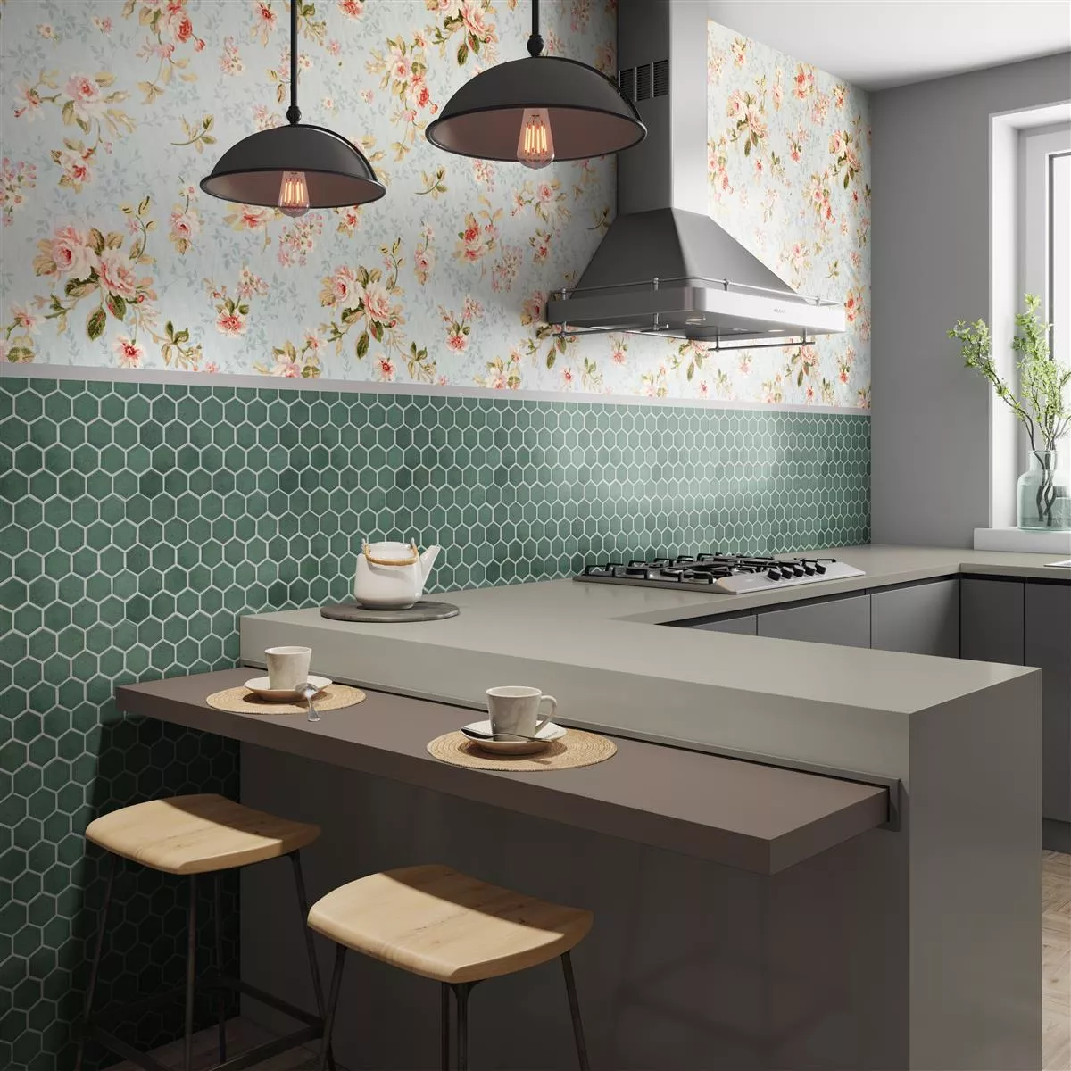 Cerámica Azulejos De Mosaico Eldertown Hexagonales Verde Oscuro