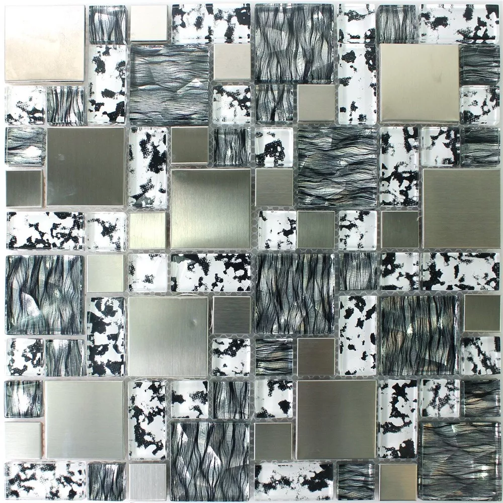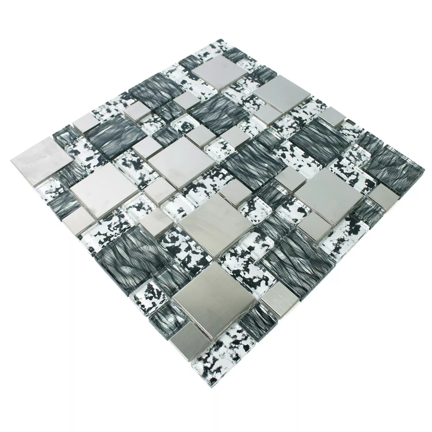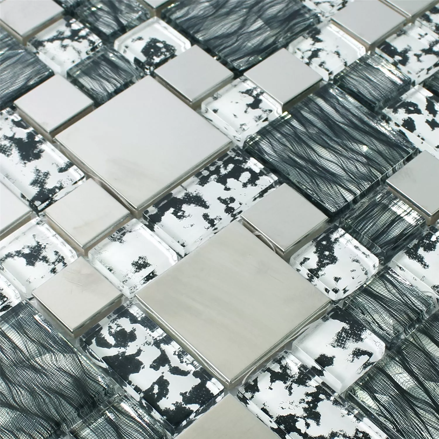 Cristal Acero Inoxidable Mosaico Rio Negro Plateado Blanco