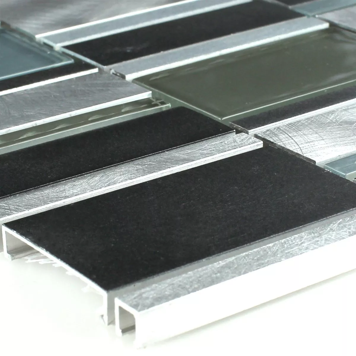 El mosaico de aluminio, metal y vidrio es un producto único y elegante que complementa a la perfección cualquier hogar. Fabricado con aluminio cepillado y metal pulido, ofrece un atractivo acabado superficial moderno y atemporal.