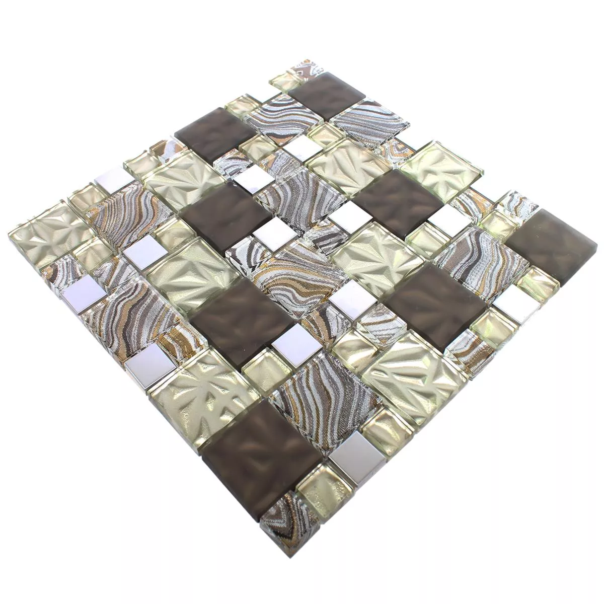 Cristal Metal Acero Inoxidable Mosaico Zadar Beige Marrón