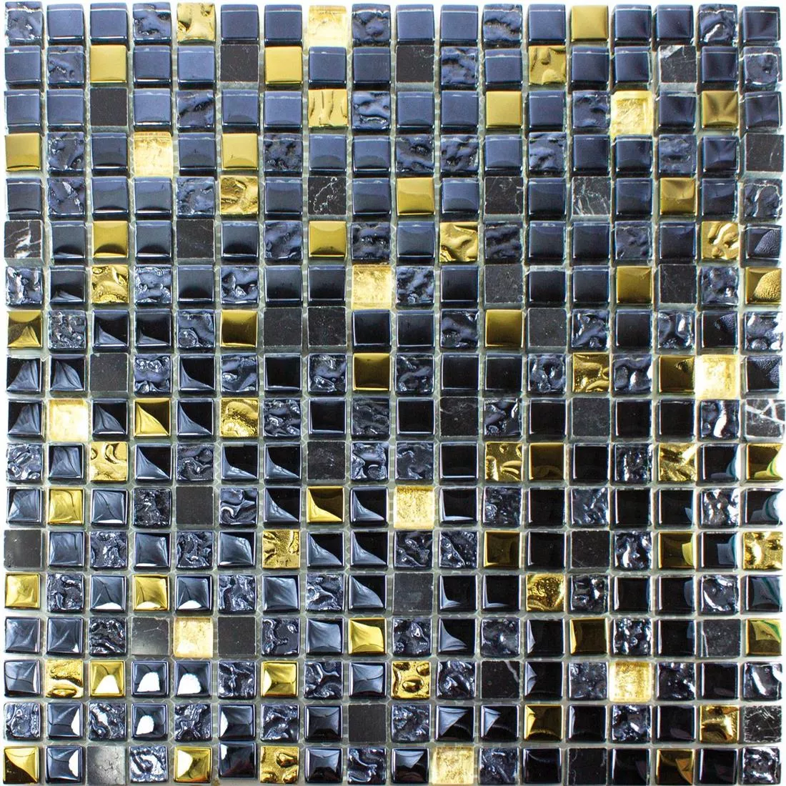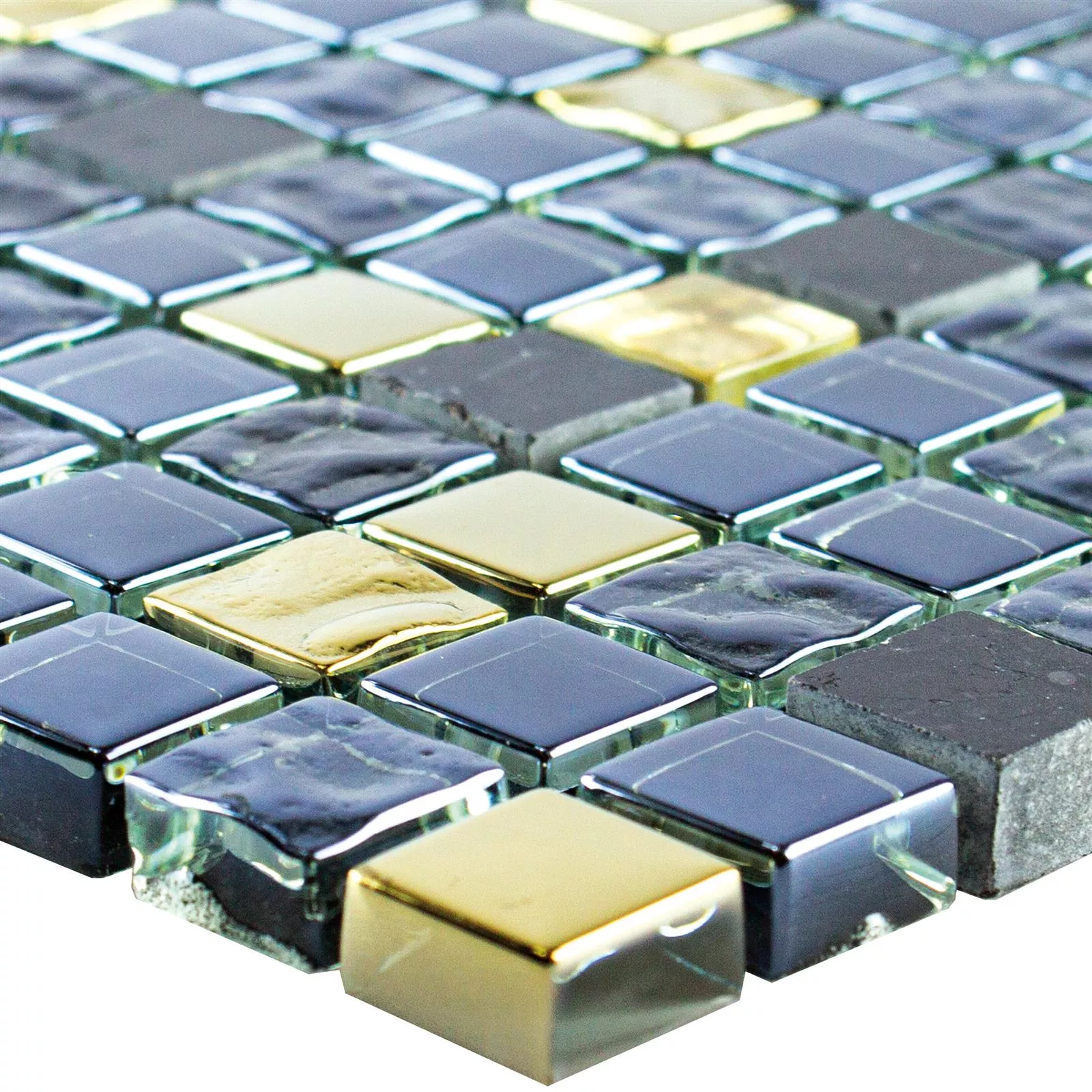 Cristal Piedra Natural Azulejos De Mosaico Cooktown Negro Oro