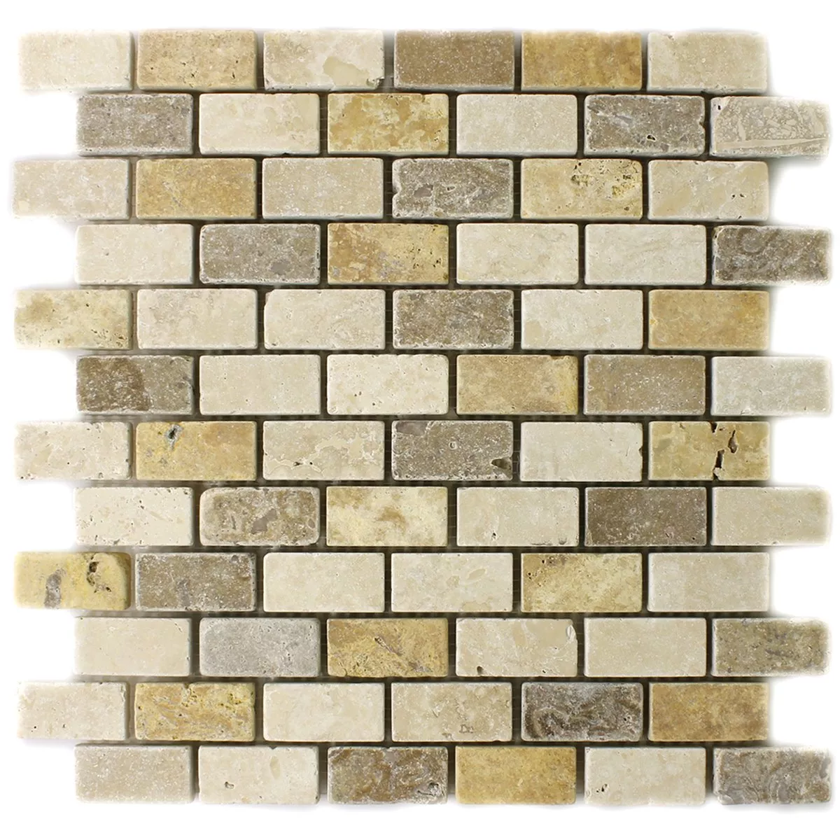 Azulejos De Mosaico Travertino Marrón Beige Rojo