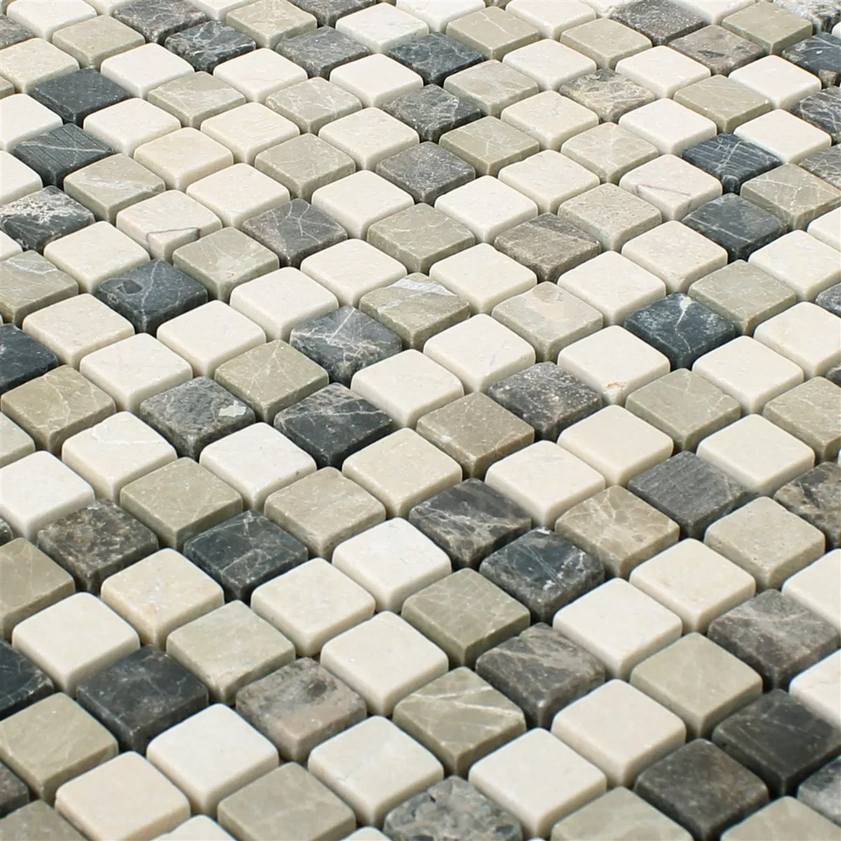 Los mosaicos Waranya son mosaicos de mármol muy armoniosos. Con la variante Castano Biancone, se puede establecer un acento natural, que se integra armoniosamente en la imagen general. Los azulejos de piedra natural son ideales para un diseño atractivo de paredes o suelos. Sin embargo, solo se pueden usar en interiores. Las pequeñas piedras de mármol de 15 x 15 mm están sobre una estera. Un mosaico tiene las dimensiones 30,5 x 30,5 cm y 7 mm de espesor. Las piedras de diferentes colores en tonos naturales son todas de mármol. Castanao aparece de color marrón rojizo, mientras que Castanao Bianco aparece de beige a gris. Además, las piedras individuales tienen granos diferentes, por lo que los mosaicos no parecen uniformes. Esto evitará que estos mosaicos se vean aburridos.