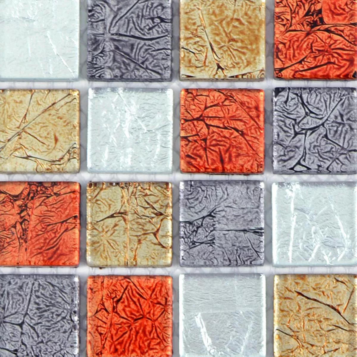 Los mosaicos de vidrio son populares y se pueden comprar en una variedad de tamaños y patrones de piedra. Los mosaicos Curlew son de interés para los compradores que buscan tapetes de mosaico de calidad y quieren elegir entre diferentes tamaños de piedra. Los azulejos están disponibles en diferentes colores. En la versión de color rojo beige plata. El mosaico está hecho de mosaico de vidrio que tiene una apariencia metálica. Debido al brillo metálico, la superficie se ve muy elegante.