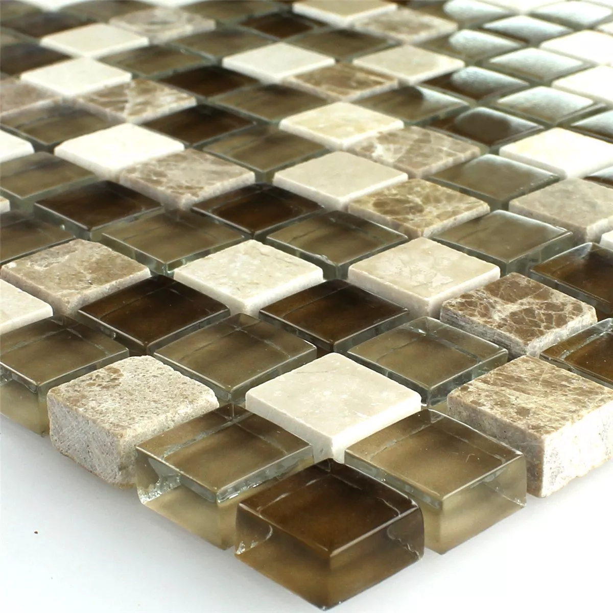 Muestra Azulejos De Mosaico Cristal Mármol Marrón Beige