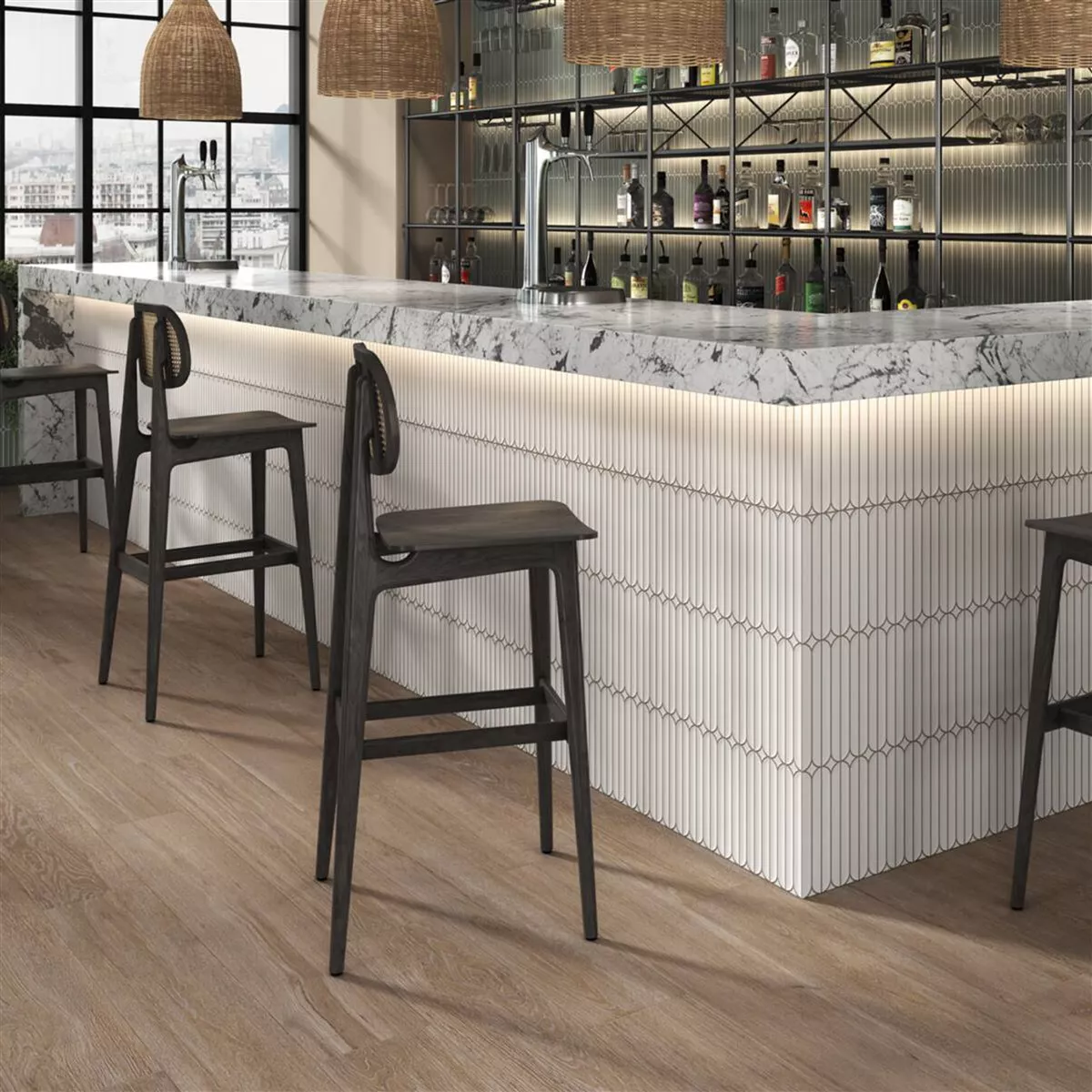 Cada baldosa y cada mosaico tienen diferentes requisitos de recorte, colocación y procesamiento debido a las características individuales del material y las condiciones de uso. Solicite a un experto local la colocación correcta y segura de sus mosaicos o baldosas. No somos responsables por el uso no profesional y la mano de obra defectuosa de los materiales de construcción.