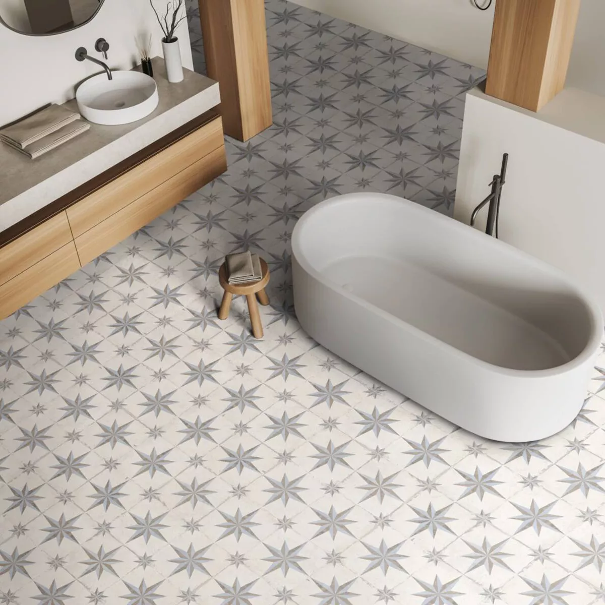 Su superficie mate y texturizada crea un ambiente acogedor y cálido en cualquier estancia, y además es ideal para calefacción por suelo radiante. El azulejo gótico se puede instalar tanto en pared como en suelo. También es excelente como salpicadero de cocina o para otros diseños de salpicaderos.