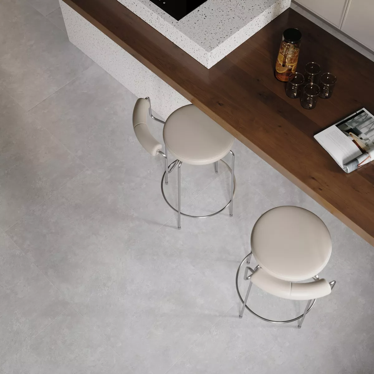 El azulejo de gres porcelánico Jamaica es el elemento perfecto para su interior. Con unas dimensiones de 60 cm x 60 cm, es ideal para cocinas, baños, lavaderos, trasteros y salones. Su color gris y su superficie mate aportan un toque metálico a cualquier estancia. Gracias a sus propiedades especiales, es apto para calefacción por suelo radiante, además de ser antideslizante e impermeable. Esto hace que el azulejo Jamaica sea también ideal para revestir paredes y suelos de ducha, así como para paredes de garaje.