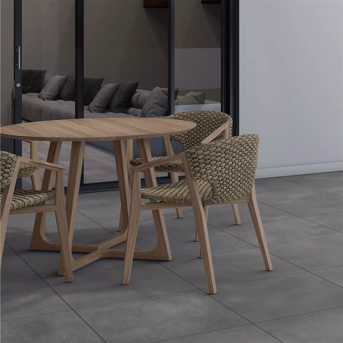 El aspecto concreto de las losas le da a su espacio exterior o interior una estética moderna e industrial. El color gris encaja bien en varios conceptos de diseño y puede armonizar con diferentes colores y estilos.
