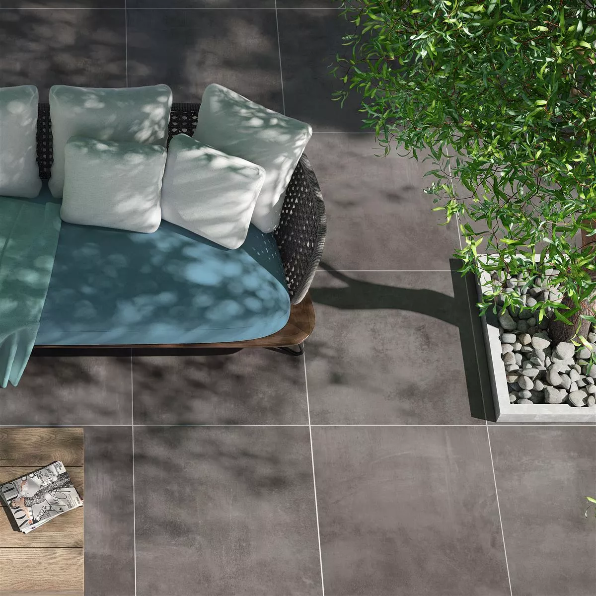 Las baldosas para patio “Mossburg Stone Look Grey” ofrecen una combinación perfecta de estética y funcionalidad para su área exterior. Con un formato de 80x80cm y un espesor de 20mm, estos azulejos de gres porcelánico rectificado se presentan como una solución robusta y antiheladas para terrazas, jardín y salón. La superficie esmaltada mate con aspecto de piedra confiere a su zona exterior un aspecto atemporal y atractivo.