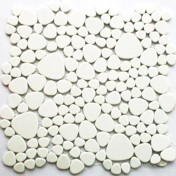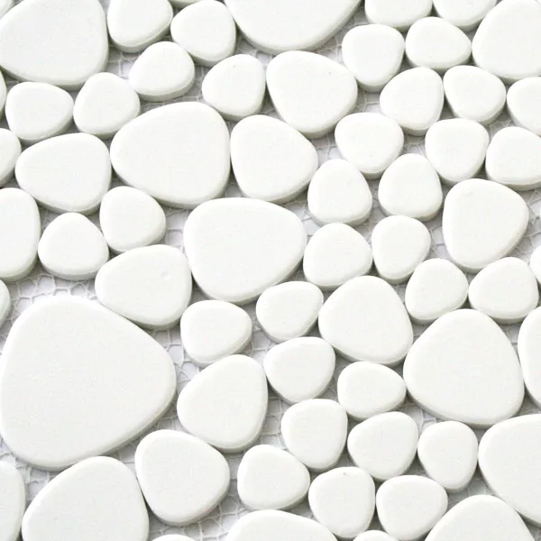 Mosaico Cerámico Azulejos Guijarro de Río Óptica Moorland Blanco Brillante