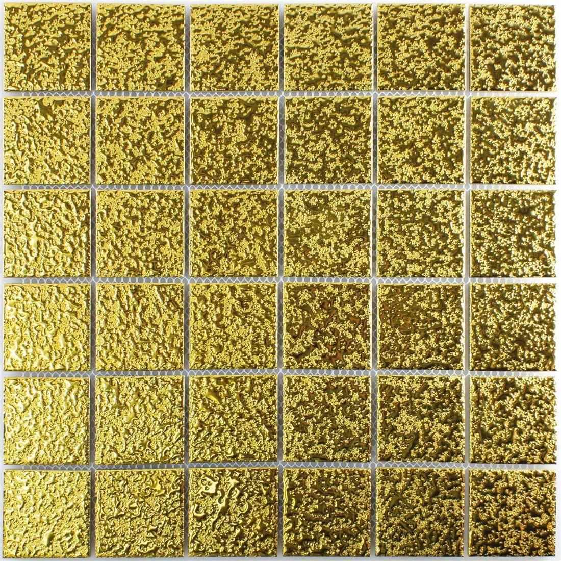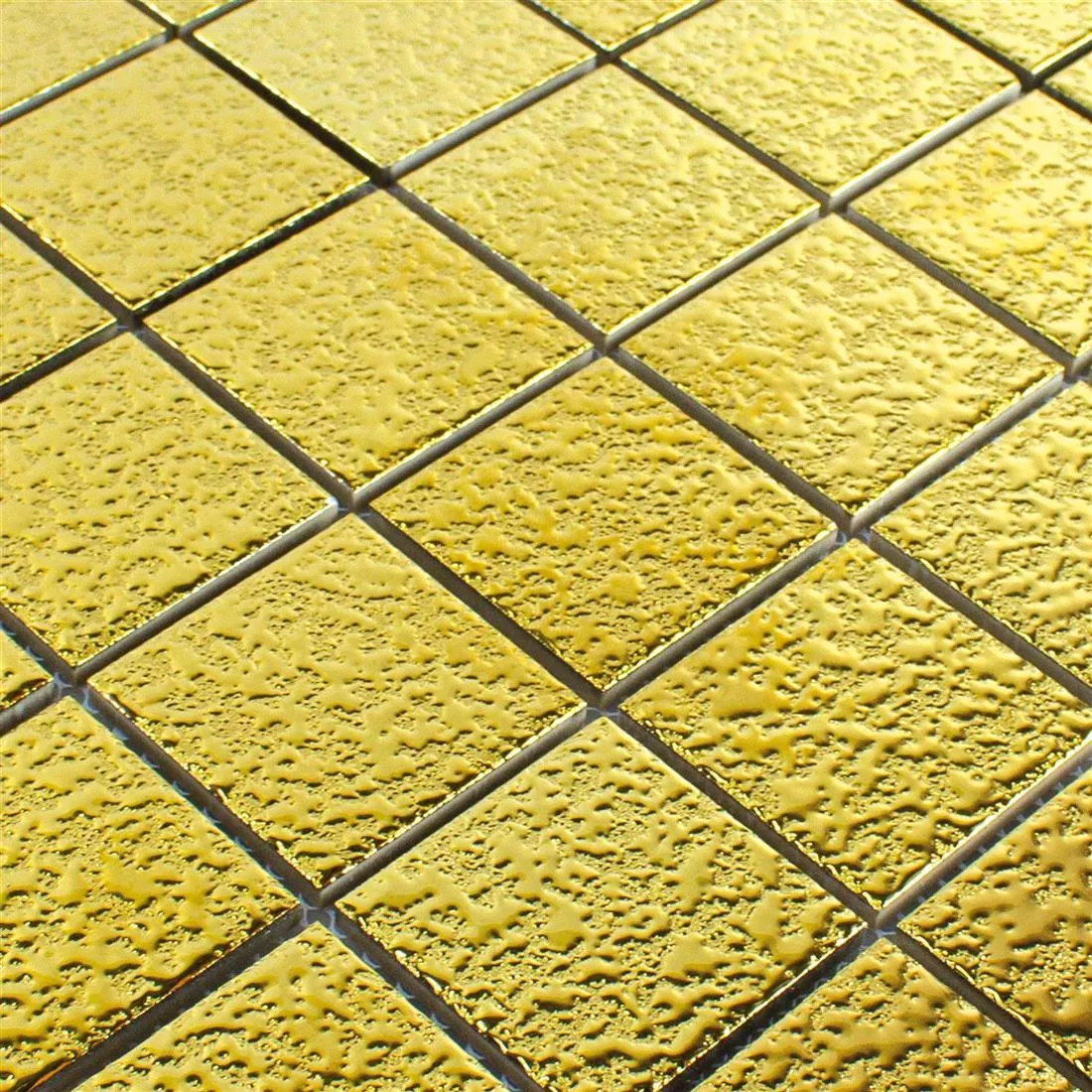 Los azulejos de mosaico de cerámica Jackson Gold Hammered vienen en un elegante tono dorado que agregará un toque de lujo a cualquier habitación. Su formato cuadrado y aspecto metálico aseguran un aspecto moderno y atractivo. La superficie brillante con una estructura martillada le da a las baldosas una textura interesante y refleja la luz de una manera fascinante.
