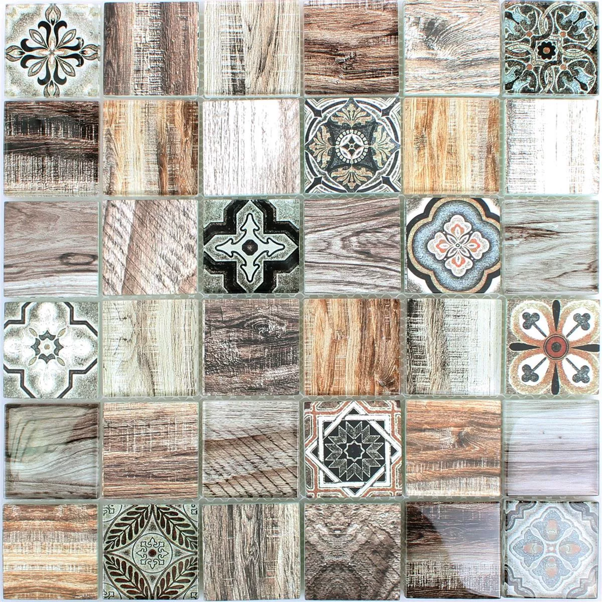 Mosaico de Cristal Azulejos Aspecto de Madera Makarska Marrón