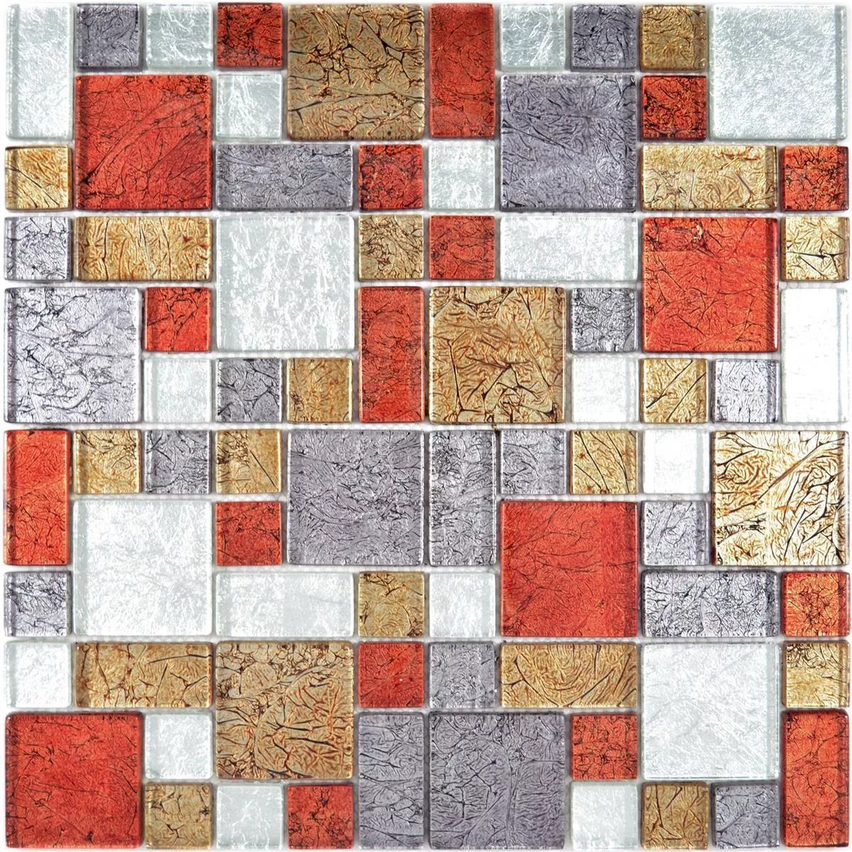 Los mosaicos de vidrio son populares y se pueden comprar en una variedad de tamaños y patrones de piedra. Los mosaicos Curlew son de interés para los compradores que buscan tapetes de mosaico de calidad y quieren elegir entre diferentes tamaños de piedra. Los azulejos están disponibles en diferentes colores. En la versión de color rojo beige plata. El mosaico está hecho de mosaico de vidrio que tiene una apariencia metálica. Debido al brillo metálico, la superficie se ve muy elegante.
