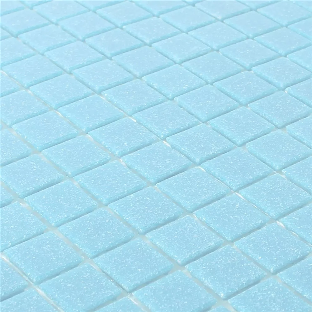 Los mosaicos de vidrio Potsdam en color azul cielo son perfectos para el diseño del baño y la pared trasera de la cocina. Un mosaico en la pared del baño llama la atención de todos. Escenifica hábilmente la pared y crea la atmósfera deseada en la habitación.
