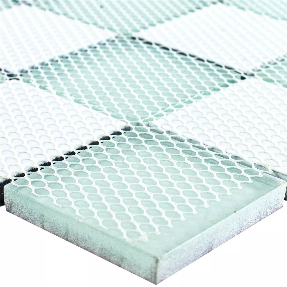Los mosaicos miden 48 x 48 mm y están dispuestos sobre tapetes de 30 x 30 cm, que cubren una superficie de 0,090 m². Con un espesor de 8 mm, las baldosas ofrecen una superficie robusta y duradera. El formato cuadrado de las piedras crea un patrón uniforme y elegante que resulta especialmente eficaz en distintos conceptos de estancia.