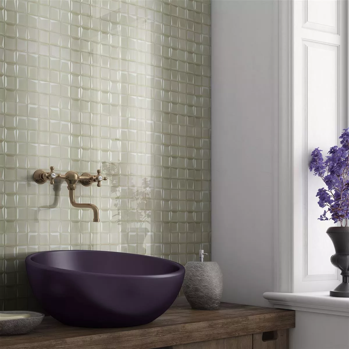 Estos mosaicos de vidrio combinan estética y funcionalidad. Su peso y su acabado de alta calidad los convierten en revestimientos de paredes duraderos y fáciles de cuidar. Traiga un ambiente elegante y atemporal a sus habitaciones con los mosaicos de vidrio Venice 3D Cream y diséñelos según sus ideas individuales.