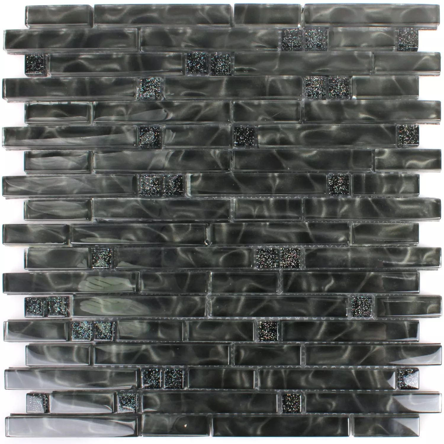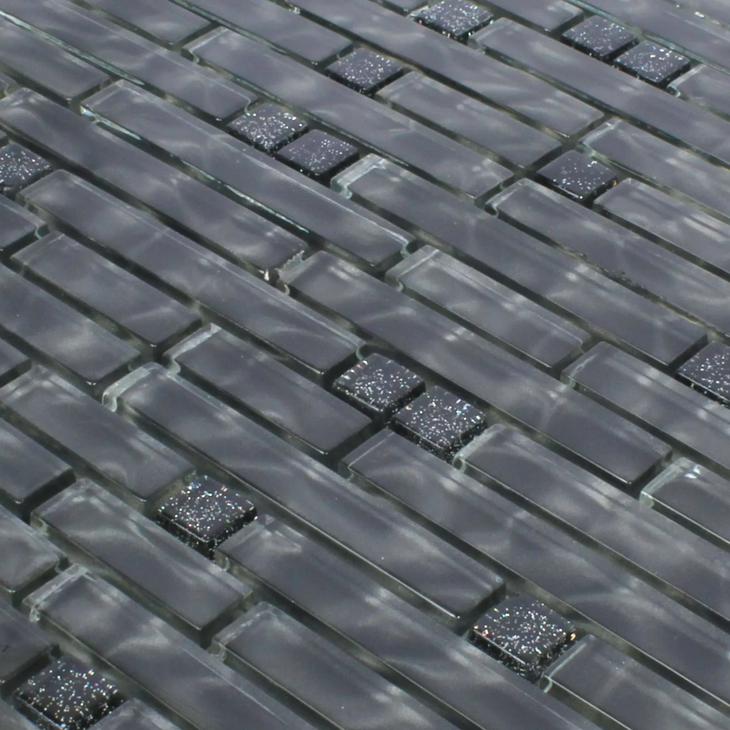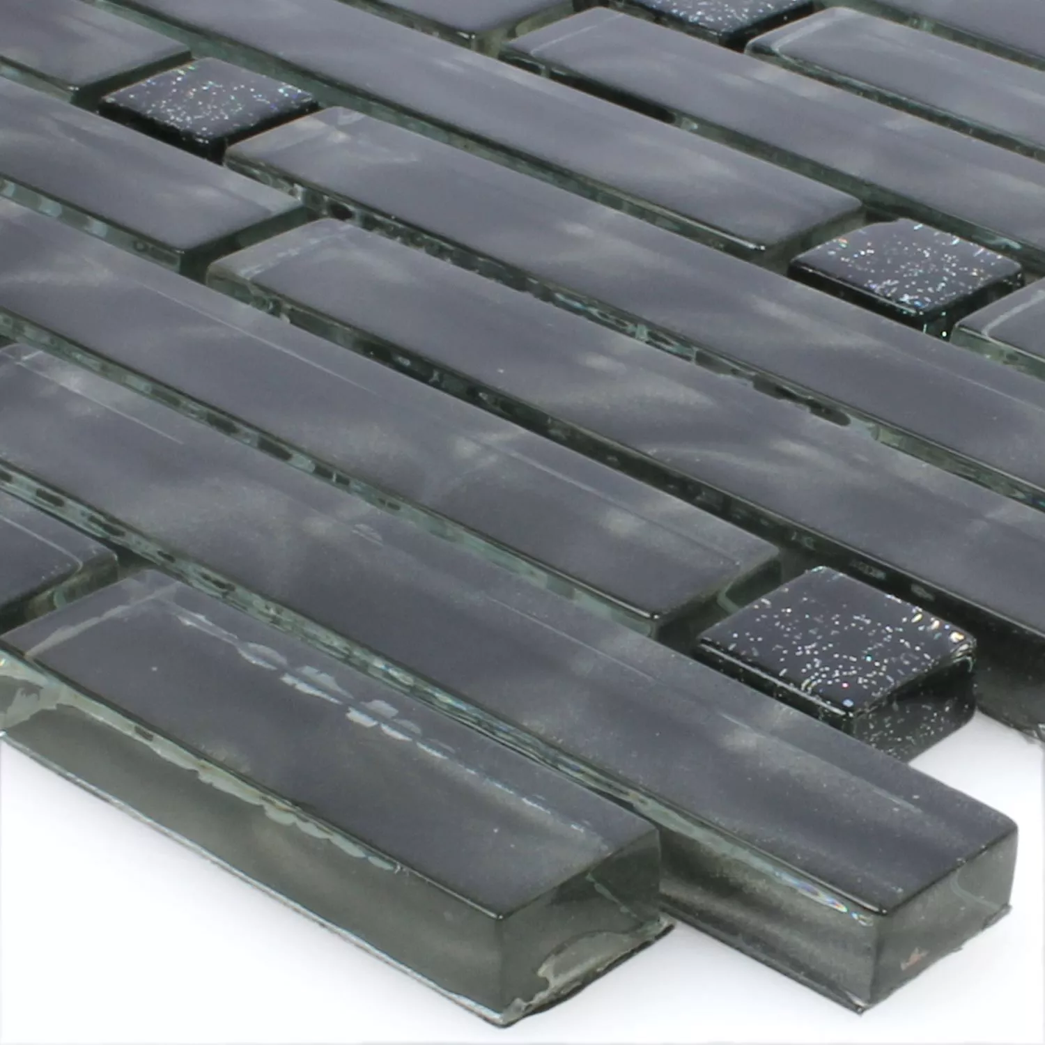 Los mosaicos de vidrio Villach están disponibles en el color negro brillo. Tienen un tamaño de piedra diferente con una superficie brillante. Los azulejos de la pared se colocan en una red a modo de estera. Estos mosaicos están hechos de vidrio y tienen un grosor razonable. Los patrones de mosaico se colocan en una red y se entregan en diferentes tamaños de mosaicos. Las muestras de baldosas se cortan de la baldosa solicitada por nuestros clientes y tienen el tamaño de un tapete. Los tapetes de mosaico terminados ya están excluidos de cambios y devoluciones. Cada uno de los mosaicos y cada mosaico de vidrio tiene diferentes requisitos en términos de recorte, colocación y procesamiento debido a las propiedades individuales del material y al uso previsto.