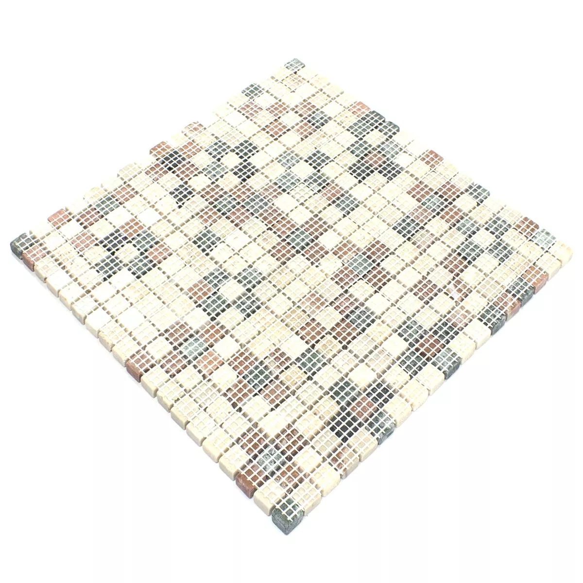 Mosaico De Mármol Antebia Crema Beige Rojo Verde