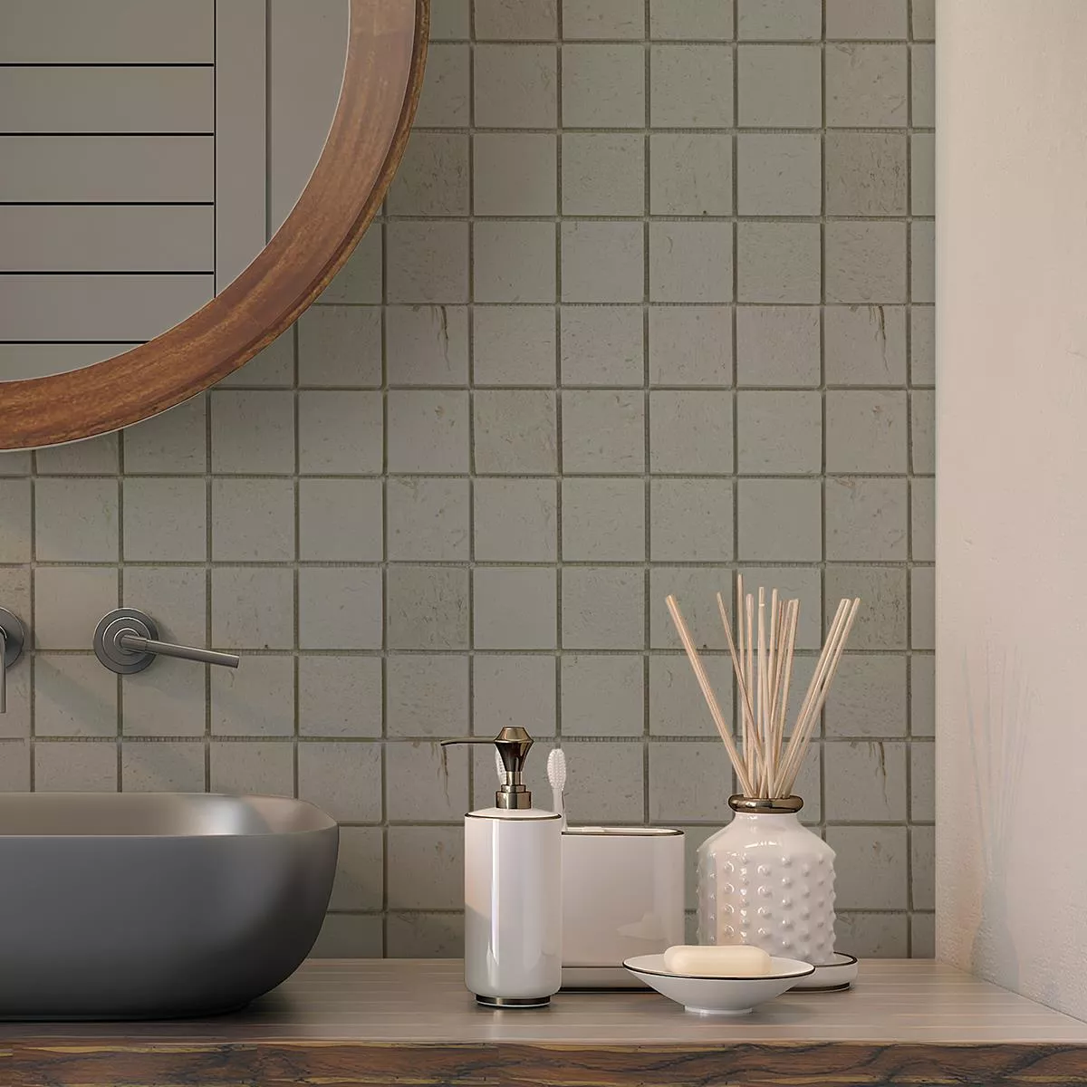 Cada baldosa y cada mosaico tienen diferentes requisitos de recorte, colocación y procesamiento debido a las características individuales del material y las condiciones de uso. Solicite a un experto local la colocación correcta y segura de sus mosaicos o baldosas. No somos responsables por el uso no profesional y la mano de obra defectuosa de los materiales de construcción.