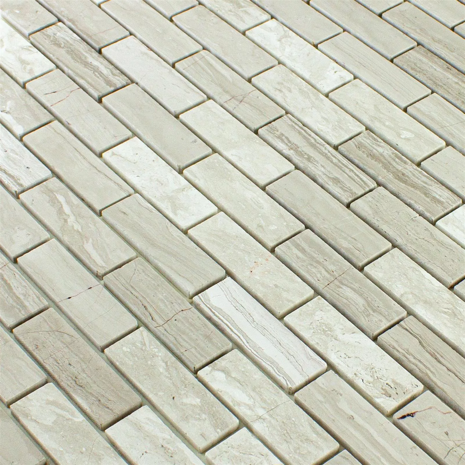 La piedra natural utilizada, el travertino, es conocida por su belleza y durabilidad. Cada piedra tiene un tamaño de 15x48 mm y tiene un acabado mate que le da un aspecto suave y agradable. La sutil textura de la piedra natural se integra a la perfección en la imagen general y crea un ambiente armonioso en su habitación.