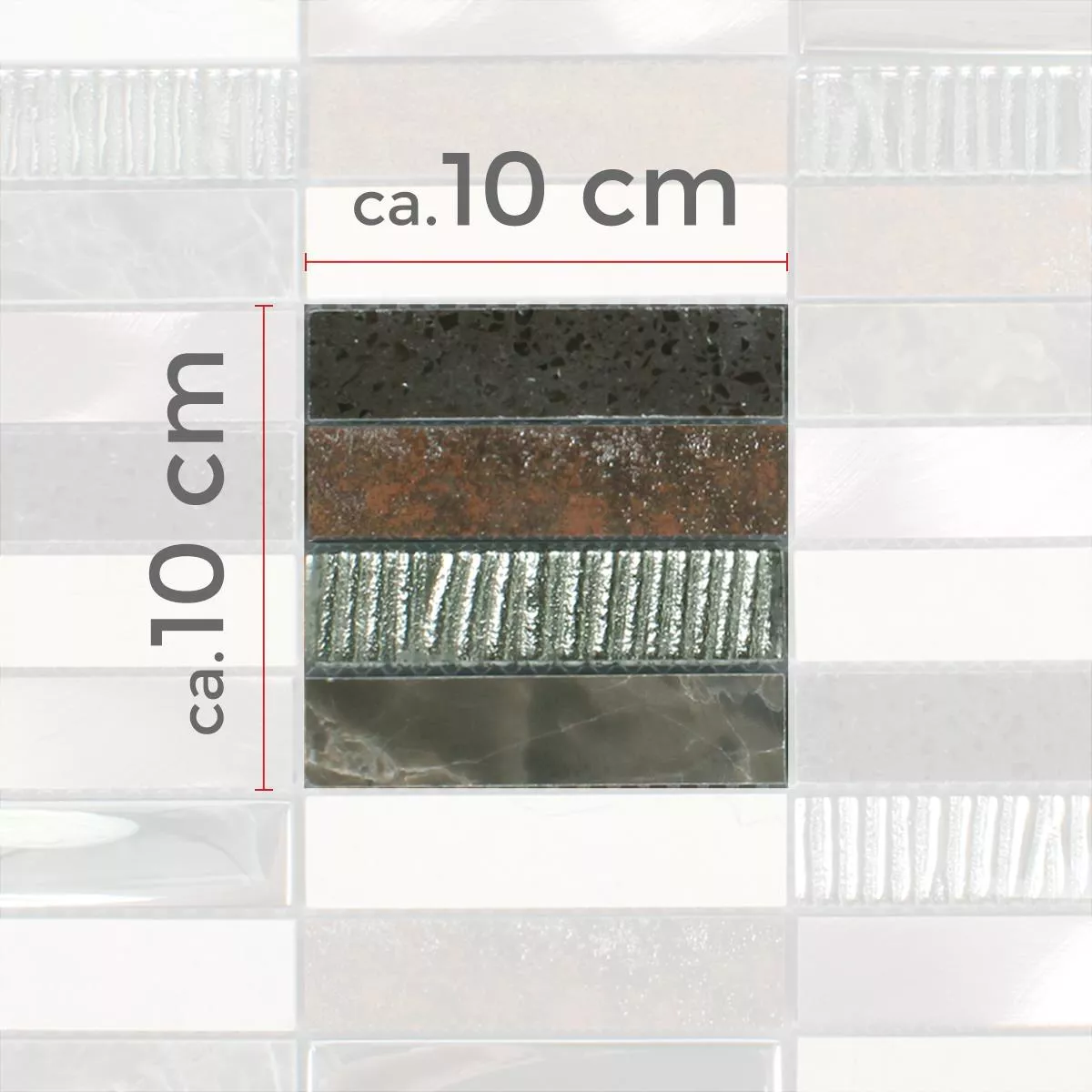 Los revestimientos son de piedra natural, vidrio y gres fino. Pero también se incluyen mosaicos de aluminio. Las baldosas son una verdadera mezcla de materiales, que resultarán especialmente eficaces cuando se coloquen sobre una superficie. Esta mezcla de materiales también es ideal para la zona de ducha. El mosaico de vidrio es perfecto y por supuesto valdrá la pena comprarlo. Los azulejos de la pared se pueden seleccionar fácilmente. Al adjuntar esta combinación de materiales, el comprador no tiene que adjuntar mosaico por mosaico. Puede pegar fácilmente la alfombra. Esto es muy fácil de hacer incluso sin conocimientos previos. Los azulejos tienen el metal como elemento. Eso solo tiene una apariencia muy noble. El metal y la piedra natural, así como el mosaico de vidrio, son perfectos para cualquiera que busque este tipo de azulejos.