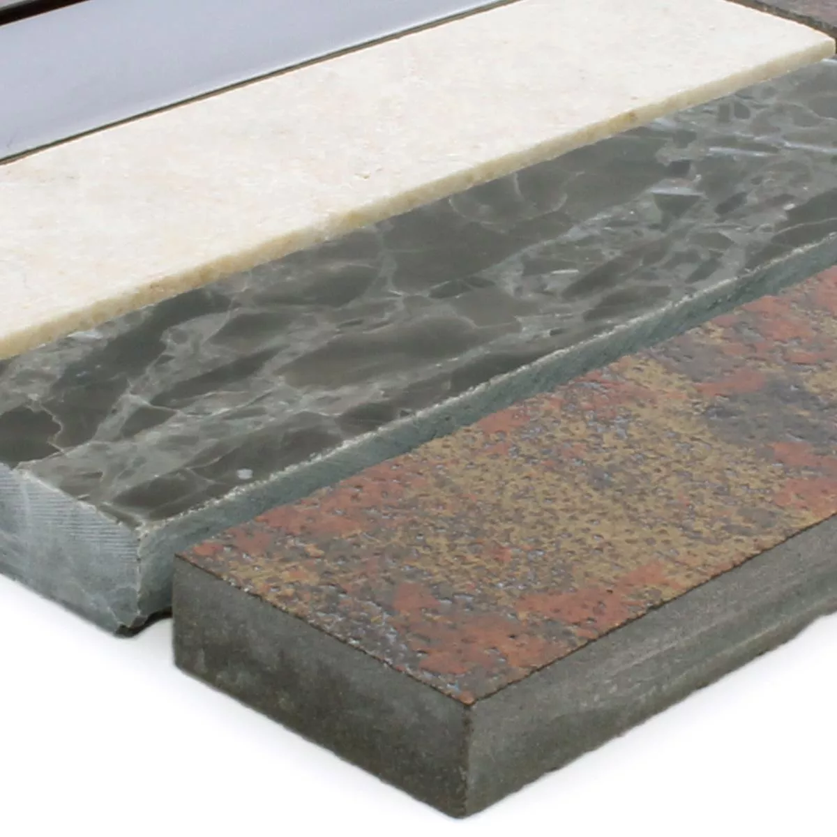 Cada baldosa y cada mosaico tienen diferentes requisitos de recorte, colocación y procesamiento debido a las características individuales del material y las condiciones de uso. Solicite a un experto local la colocación correcta y segura de sus mosaicos o baldosas. No somos responsables por el uso no profesional y la mano de obra defectuosa de los materiales de construcción.