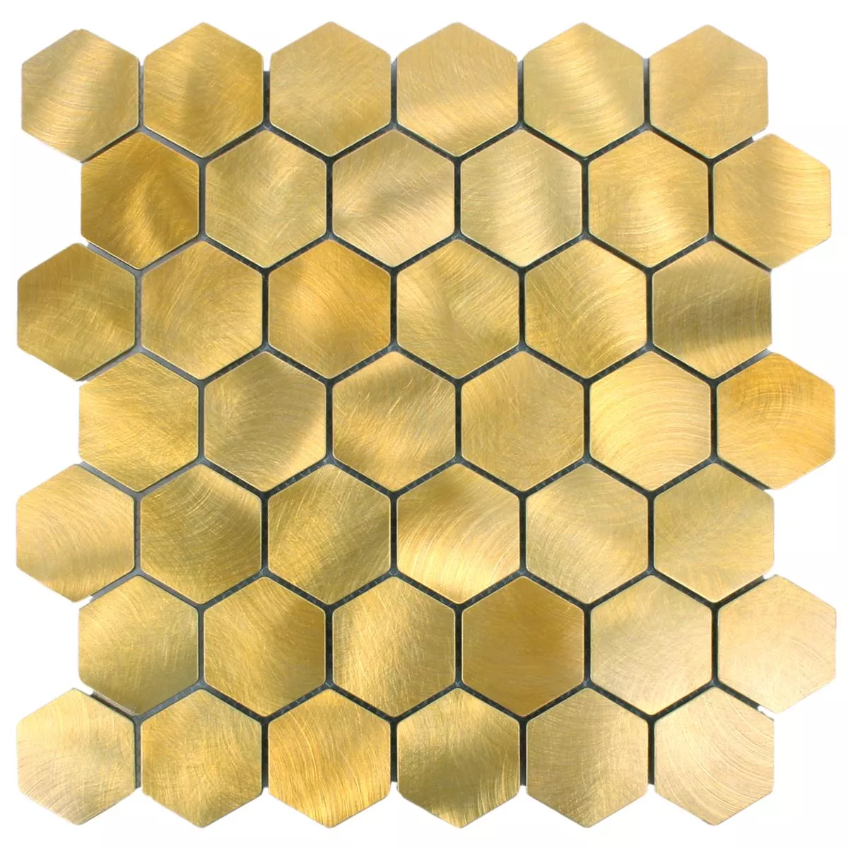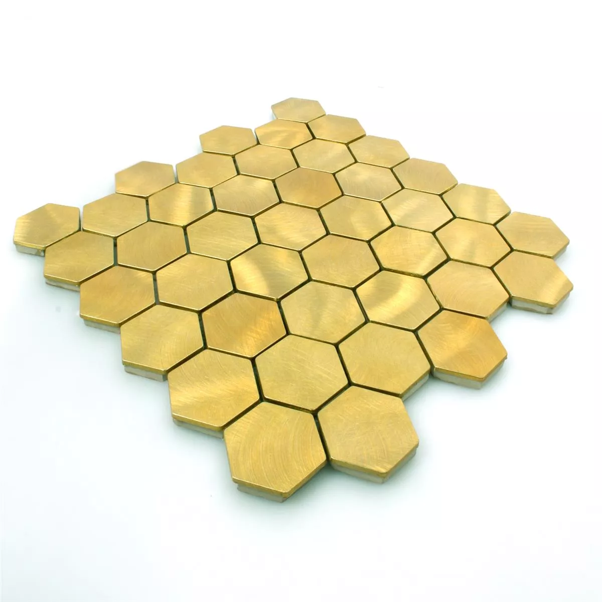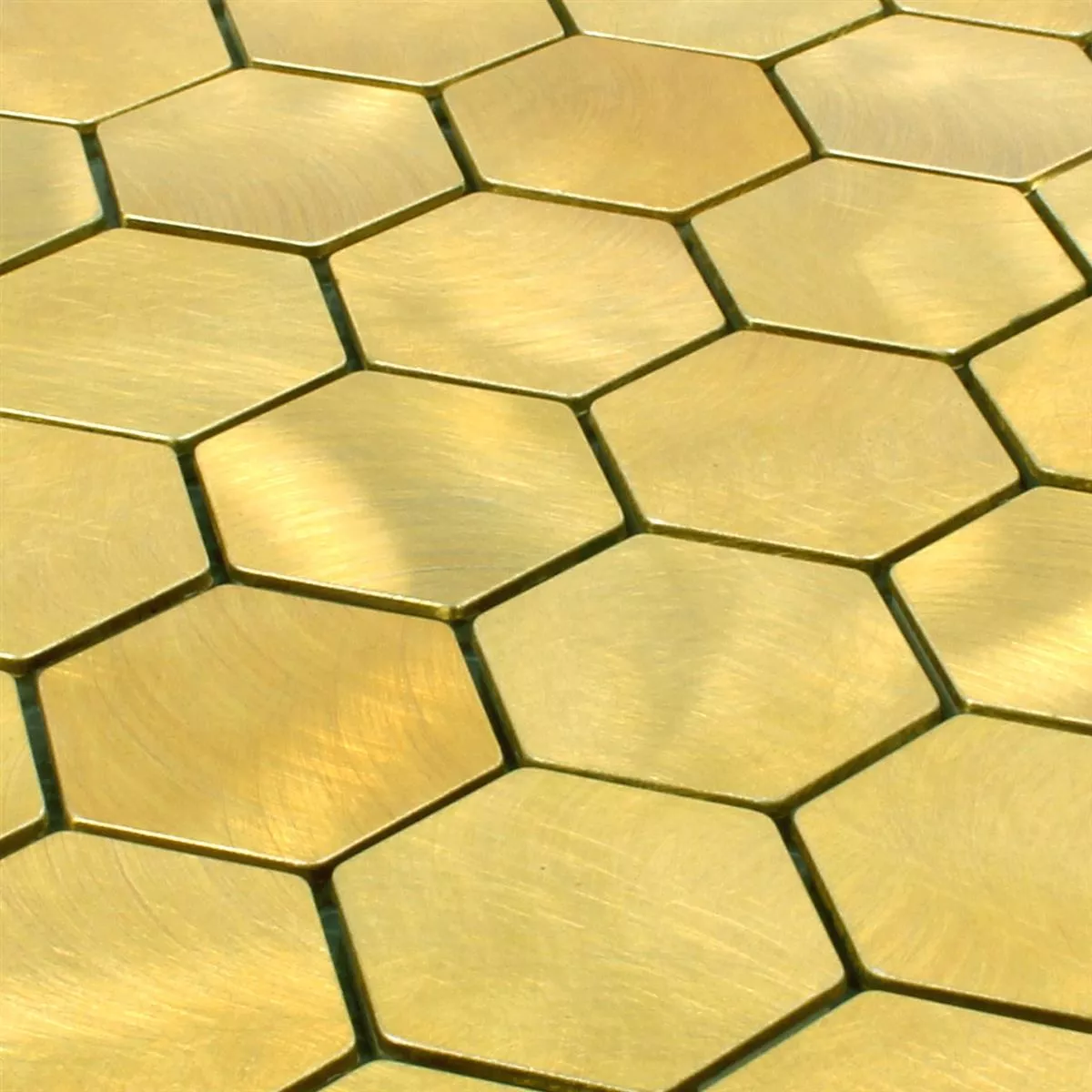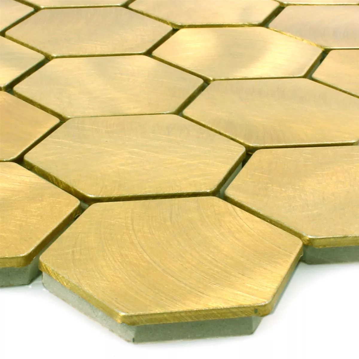 Muestra Azulejos De Mosaico Auminio Manhatten Hexagonales Oro