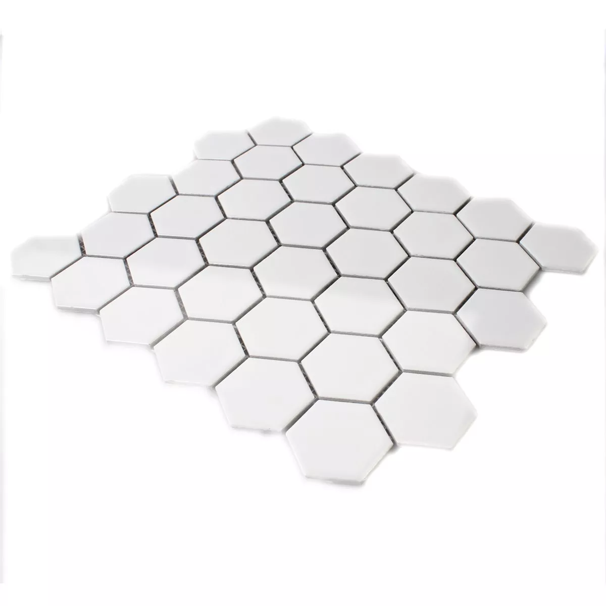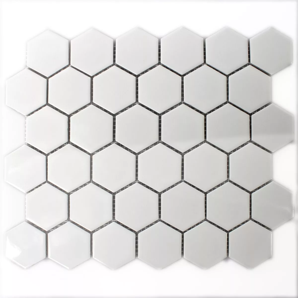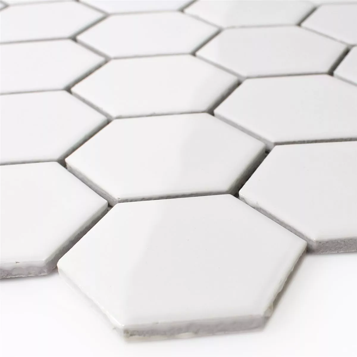 Muestra Azulejos De Mosaico Cerámica Hexagonales Blanco Brillante H51