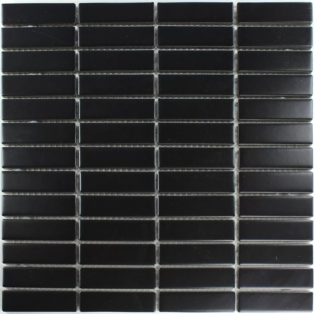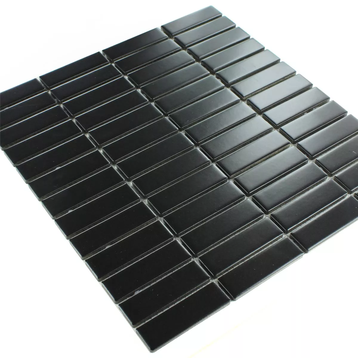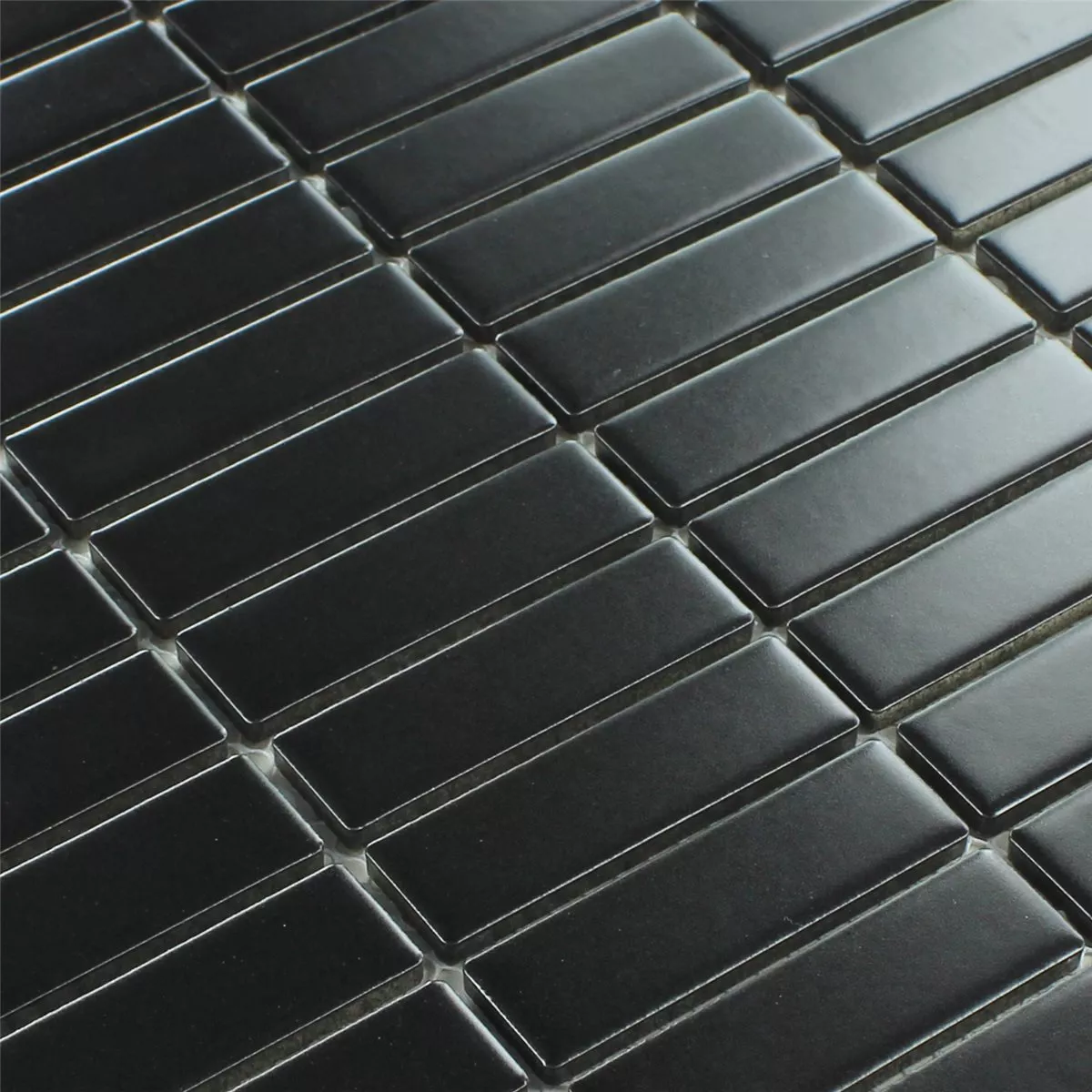 Muestra Azulejos De Mosaico Cerámica Negro Palillos Mate