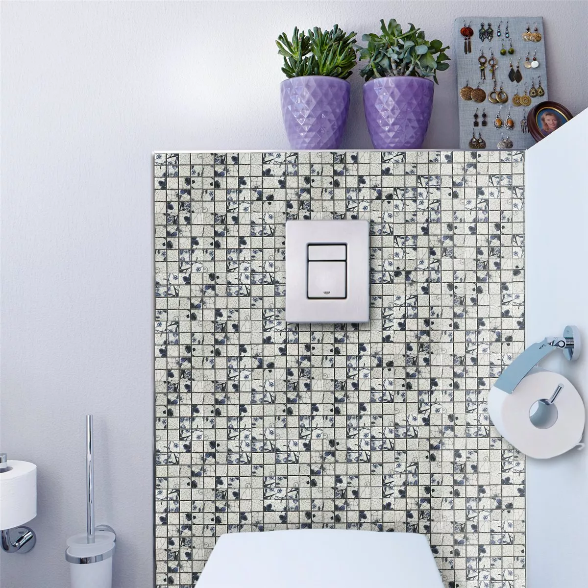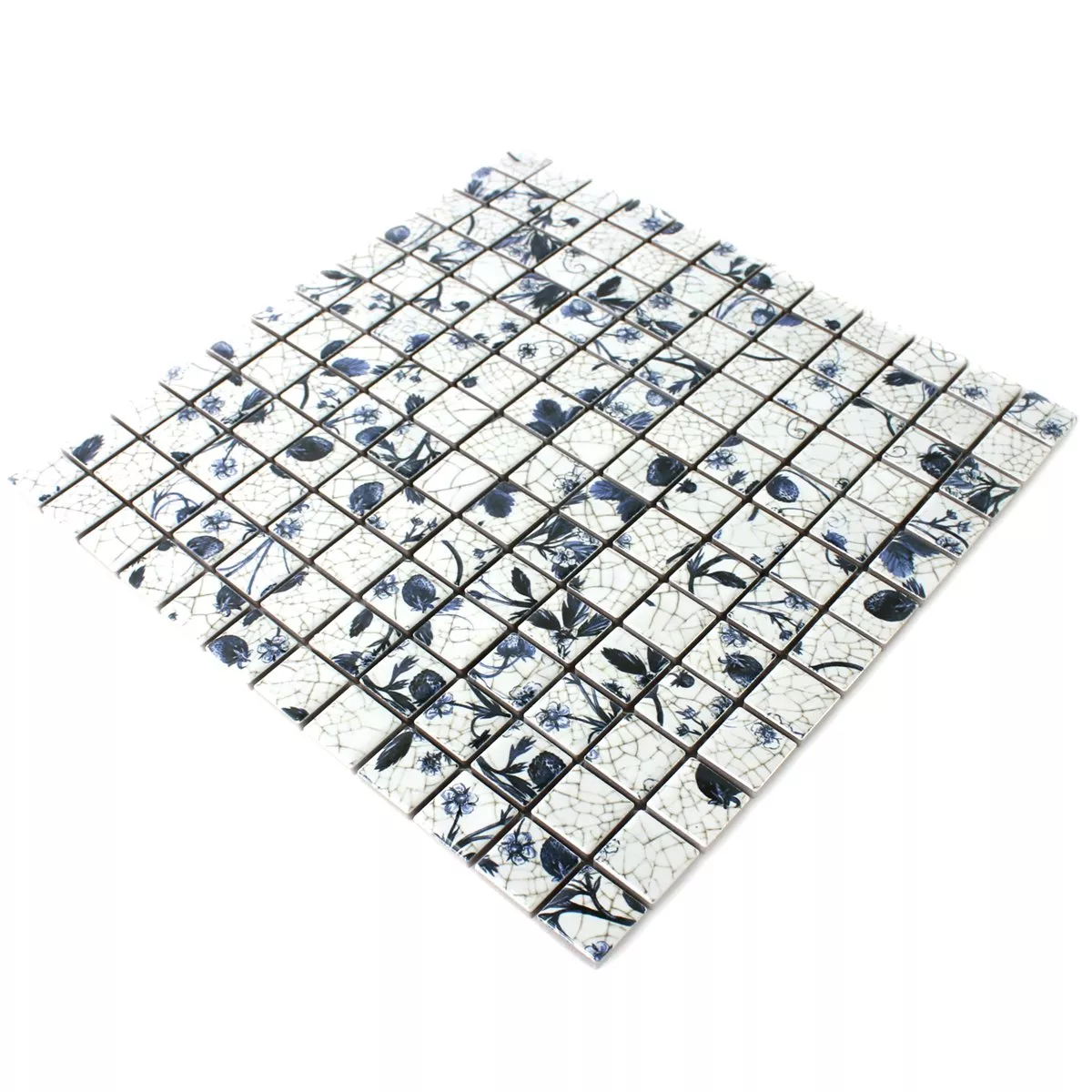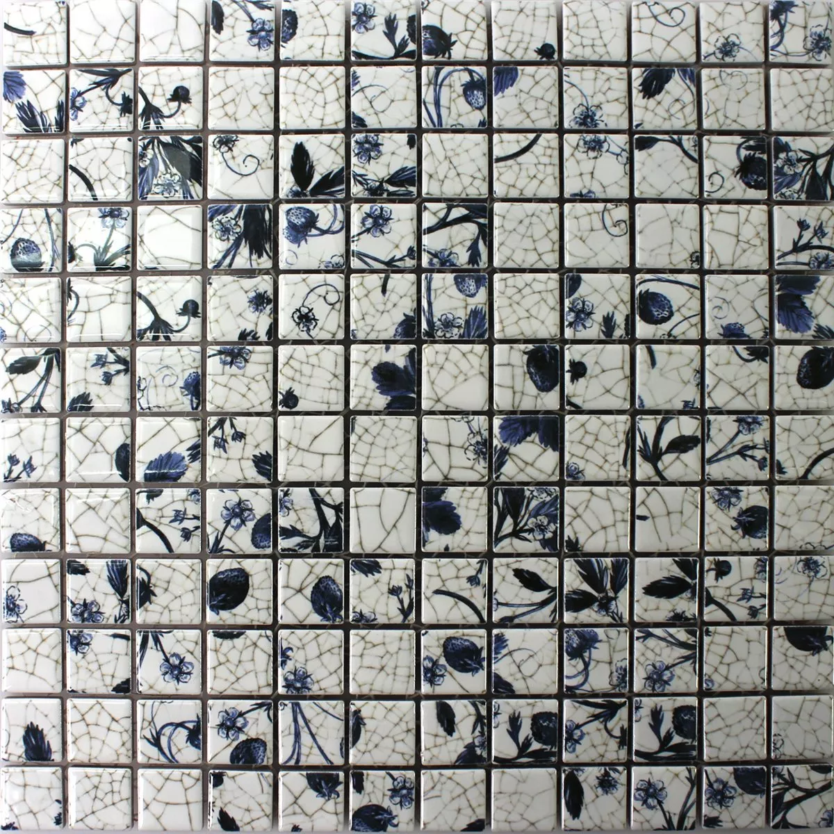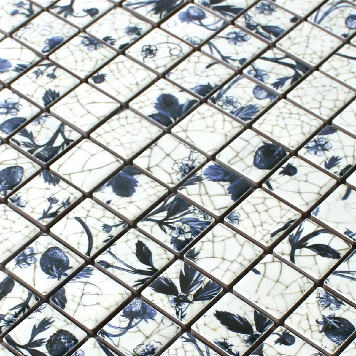 Muestra Azulejos De Mosaico Cerámica Strawberry Blanco Azul